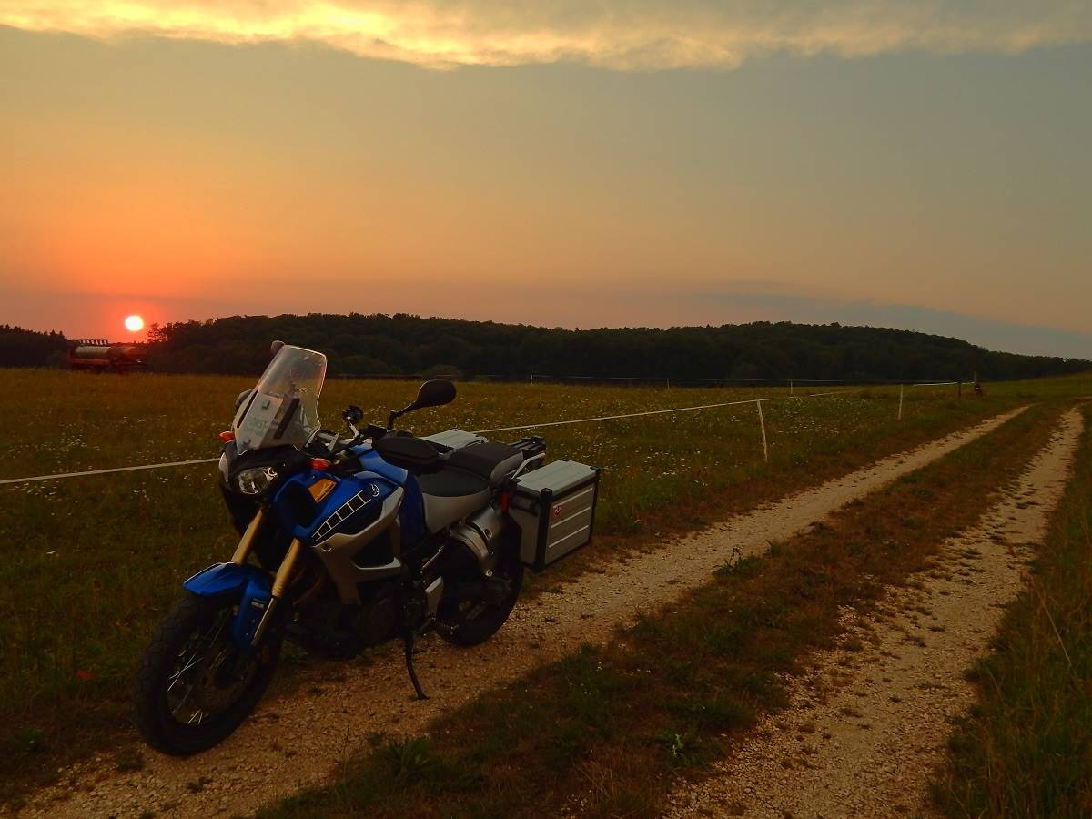 Es gibt Tage die laufen gut an, mit einem vollen Tank, Schotter unterm Reifen und am Horizont eine Sonne die über Güllefässer aufgeht.