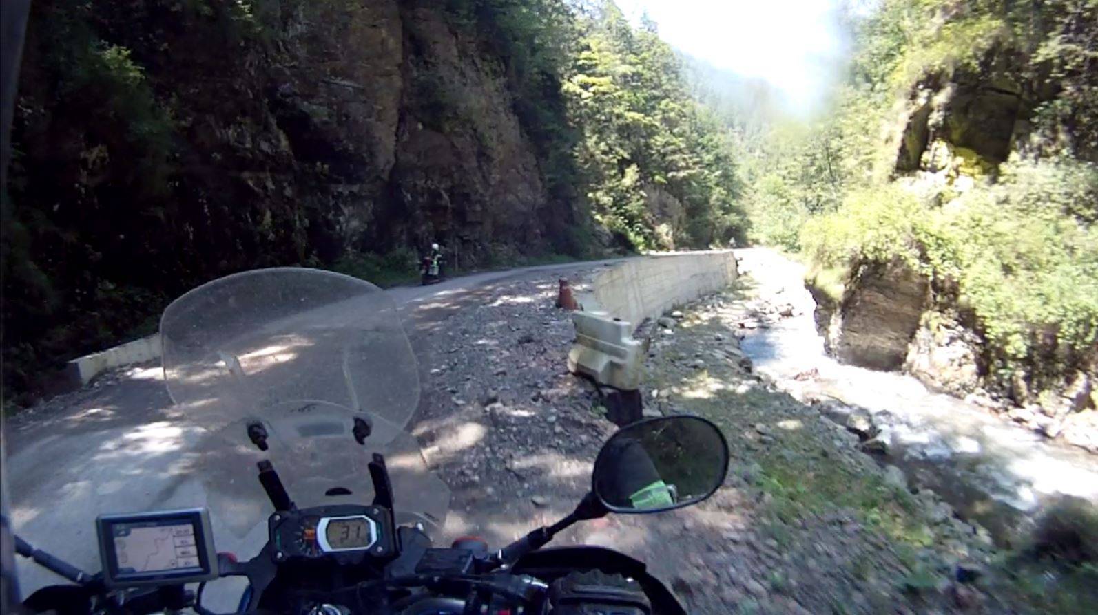 Die nächsten 6km zur Transalpina waren abenteuerlich. Die Straße war relativ neu, die steilen Böschungen waren aber nicht gesichert. Der Starkregen der letzten Wochen hat daran stark genagt. Immer wieder war Erde, Steine oder Grünzeug auf die Straße gerutscht. Aufgrund des geringen Verkehrsaufkommens, kamen wir problemlos hinunter.