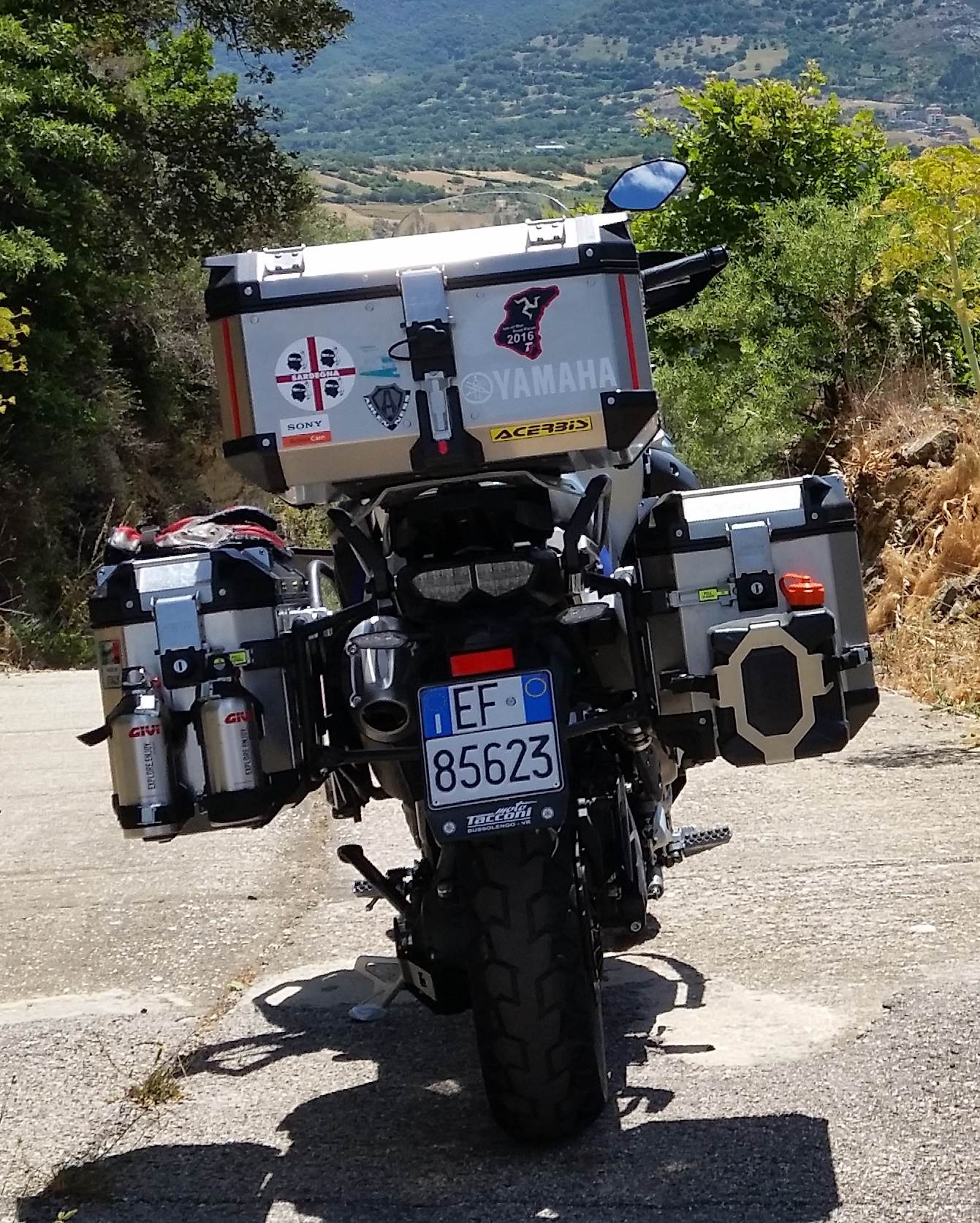 ich habe die Aluboxen ADV-Trax von Sw-Motech. Hier wollte ich Zubehörhalter installieren f. 2 Liter Kanister und Trinkflaschen. Die von SW-Motech angebotenen Halter (https://sw-motech.com/Produkte/Gepaeck/ ... 000274.htm) lassen sich nur in Fahrrichtung montieren, was den Soziusplatz zu sehr einschränkt. Für die Rückseite passen die nicht, da dort das Schloss für den Kofferdeckel und die Kofferbefestigung ist.