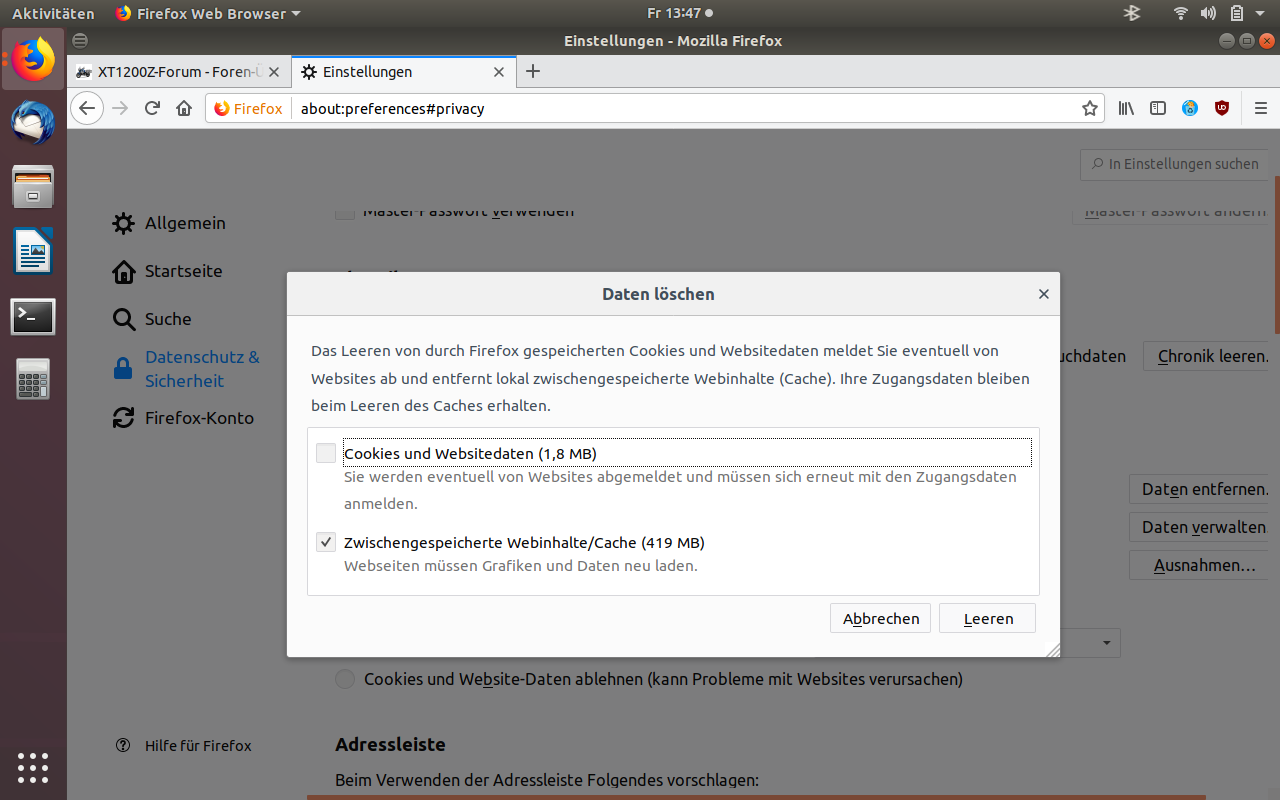 Wenn das nicht hilft, in den Einstellungen des Browsers den Cache leeren. Wiederum für Firefox geht das unter "Einstellungen > Datenschutz & Sicherheit > Cookies & Websitedaten > Daten entfernen". Dabei erst mal nur den unteren Haken ("Zwischengespeicherte Webinhalte...") lassen. Wenn das noch nicht klappt, auch noch den oberen Haken setzen.