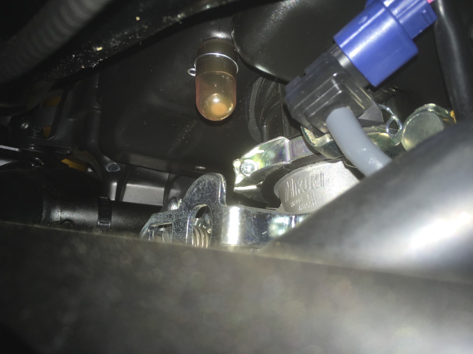 Außerdem hat Yamaha ein "Schauglas" (durchsichtiger Gummiprömpel), am tiefsten Punkt des Luftfilterkasten angebaut, welches sich sogar einfach abziehen lässt, um Öl abzulassen. Das "Schauglas" sollte nach einem ordentlich gemachten Servive selbstverständlich leer und blitzblank sein. Einfach unter den Tank schauen.