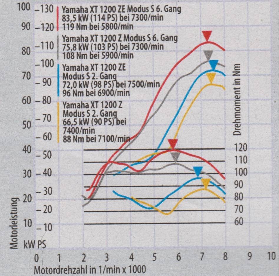 Bild 1 zeigt die Unterschiede zwischen DP01 (XT1200Z) und DP04 (XT1200ZE) inkl. Drosselung: