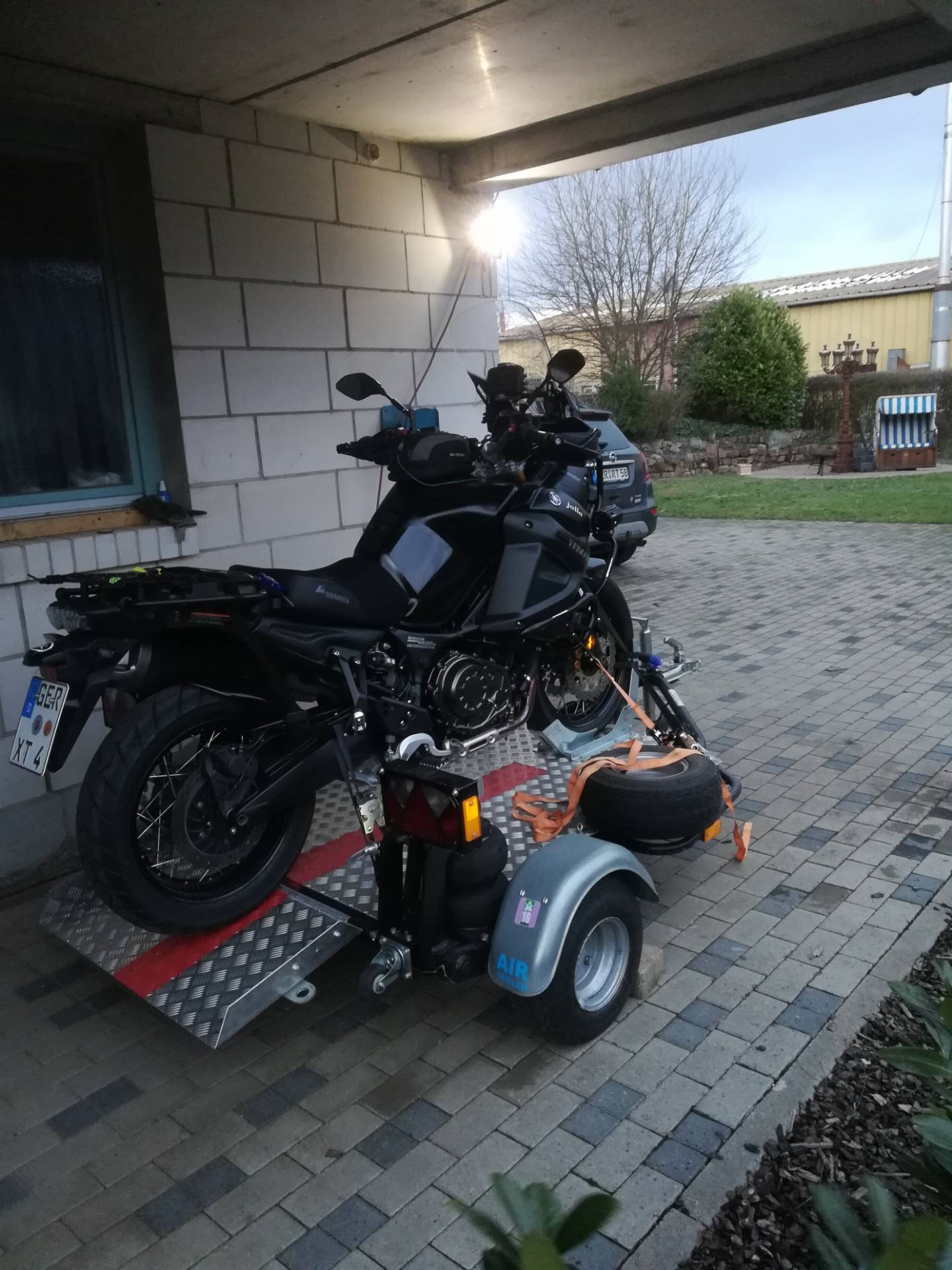 Vor der Endscheidung Hänger oder Bus stand ich auch vor einigen Jahren .Da ich aber auch ca. 30000 km im Jahr mit dem Pkw unterwegs bin habe ich mich dann für einen Hänger (brauchte sowieso einen Lastenanhänger ) entschieden denn ein Transporter braucht ja doch mehr Treibstoff . Die Anforderungen waren : 100 km/h-Zulassung ,gebremst ,möglichst viel Fäche (250cm mal 150cm ) und ein geschlossener Boden .Damals war der Agados Kangaroo 15 (https://www.agados.de/pkw-anhaenger/mot ... -gebremst/ ) meine Wahl.Bei einer Nutzlast von über 800 kg passen theoretisch 3 Bikes drauf wenn man stapelt und es nicht so Big-Bikes wie meine Tenere
