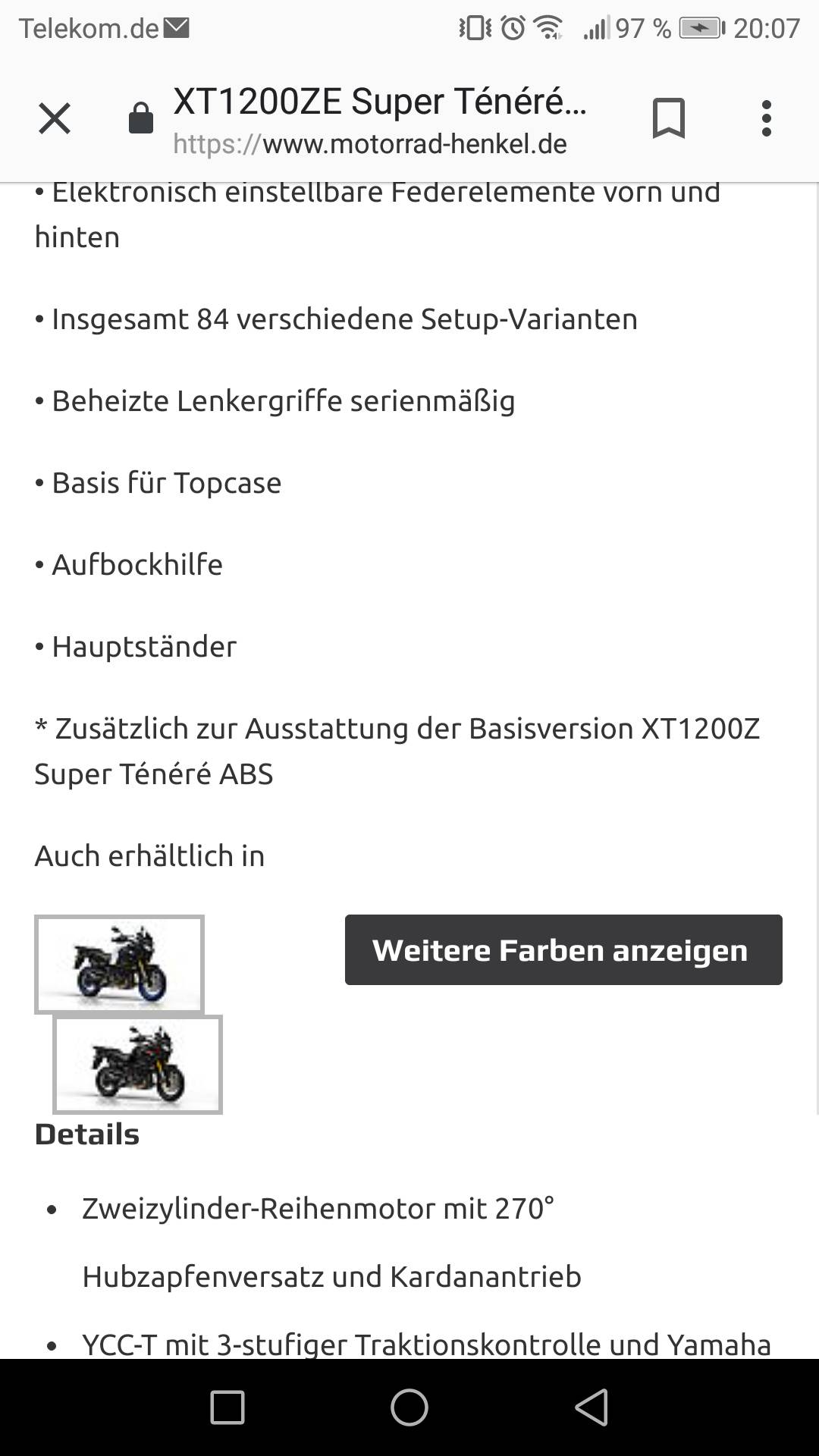Leider scheint das "gab" zuzutreffen, und das ist zu bedauern. Aber etwas ganz Anderes habe ich beim Nachstöbern dort gefunden: Einen "Griffschutz", was ein Rohrbügel um den Handprotektor ist - ich halt's nicht ausjheid hat geschrieben: Mi 20. Mär 2019, 07:33 Den weiter oben erwähnten ausklappbaren Griff habe ich an meiner Tenni nachgerüstet. Finde ich auch sehr praktisch. Gibt/gab es von Hepco&Becker.