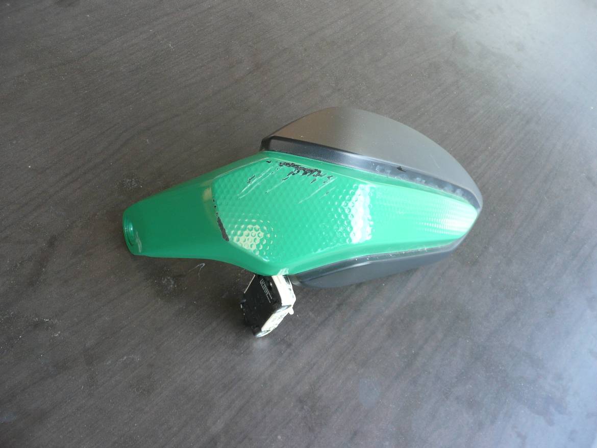 Diese Kratzer sind alles, was beim Um- und Drauffliegen an dem serienmäßigen Protektor zurück blieb. Kein Schaden an der Struktur des Teils, das somit seinen Zweck - Schutz von Griff und Bremshebel - zu 100 % erfüllt hat. Dies zur allgemeinen Information.