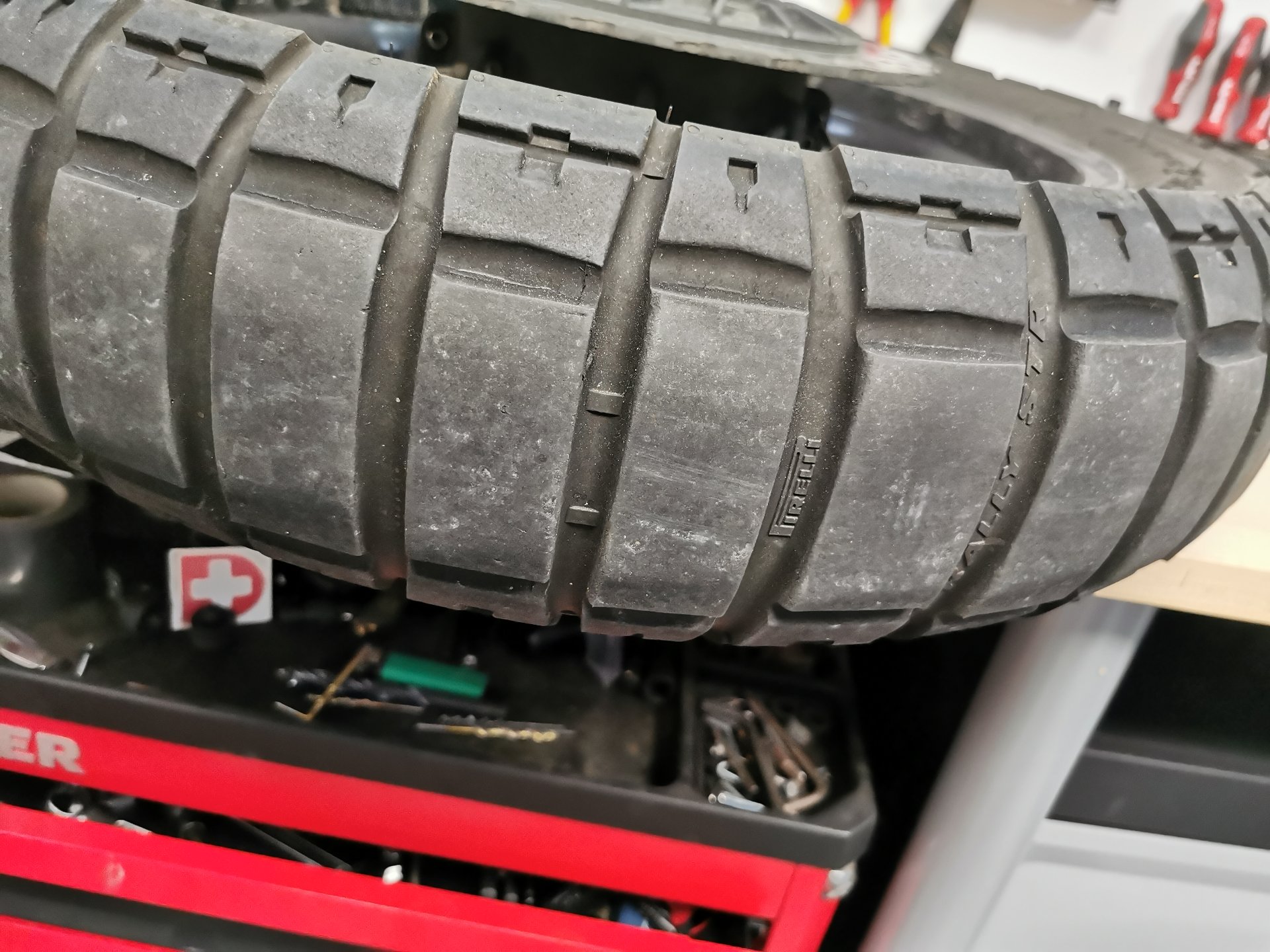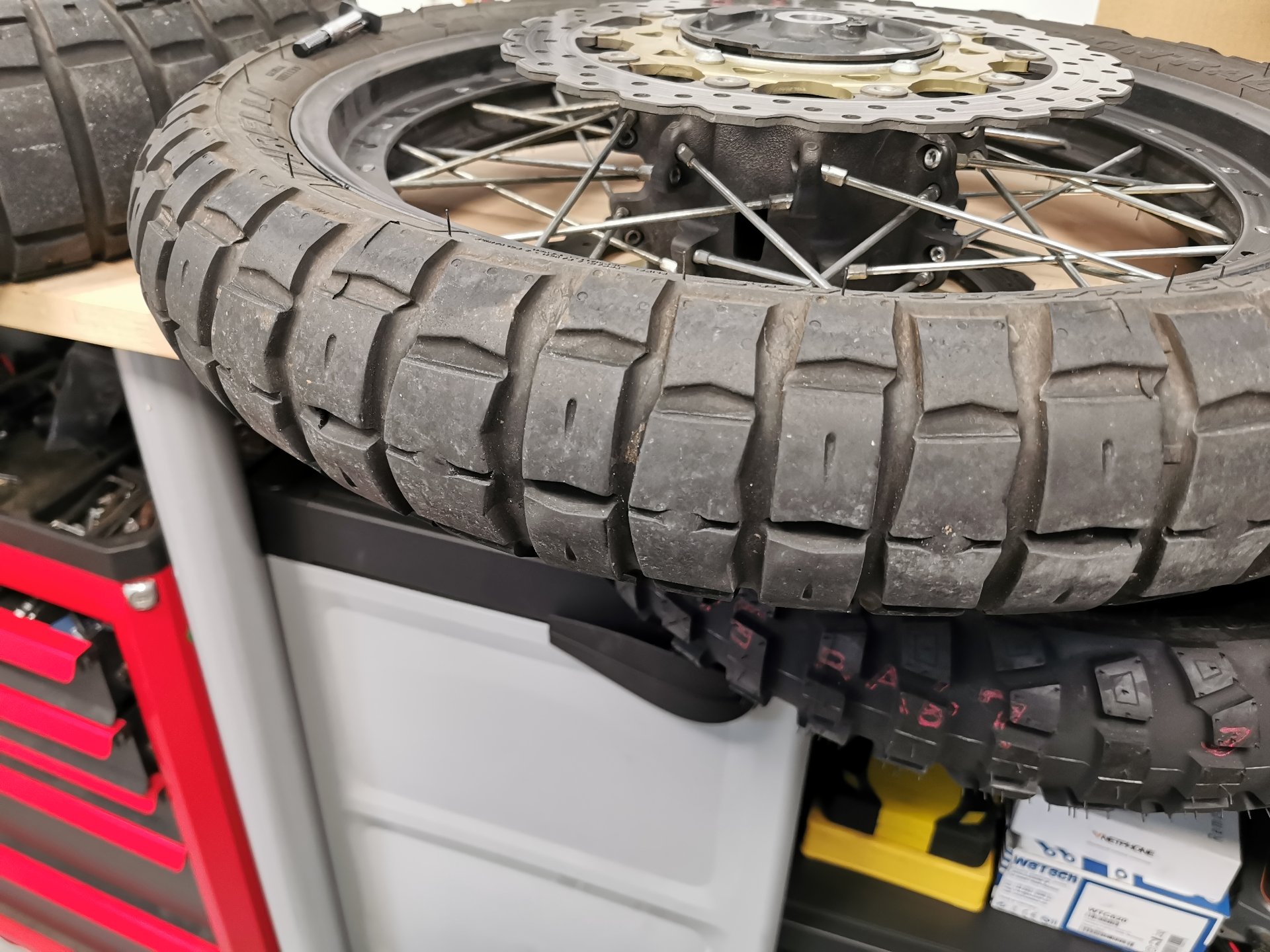 Anbei noch ein paar Bilder der Pneus, morgen kommt der Battlax drauf