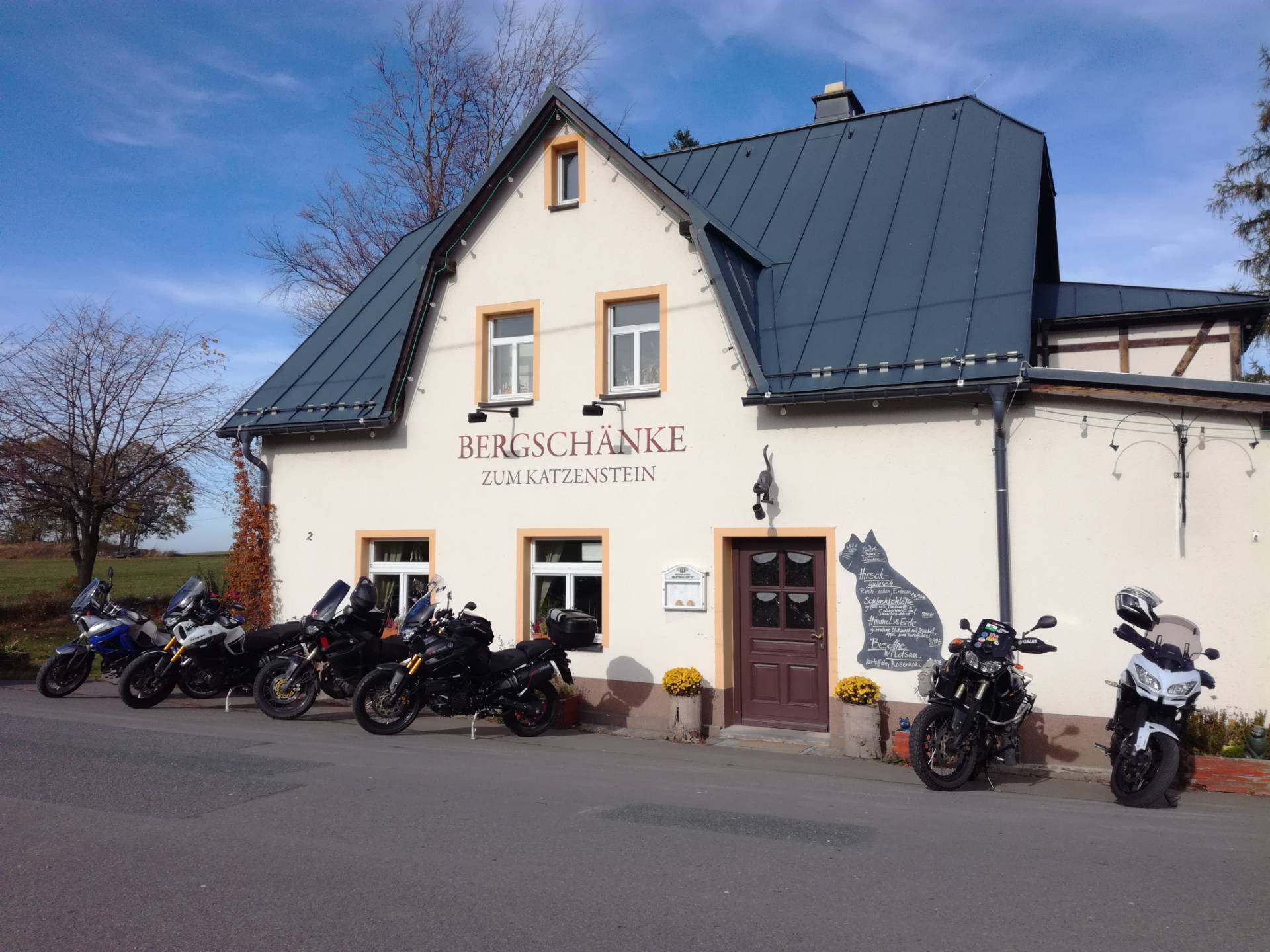 Wenn sich also die Vorhersagen nicht grundlegend ändern werden wir am Samstag 26.10. Mittags in der "Bergschänke zum Katzenstein" sein. Hätte denn nicht vielleicht der ein oder andere Lust, sich da mit uns zu treffen? Danach könnte man ja gemeinsam ne kleine Runde durchs Erzgebirge drehen. Gerne auch schon mit gemeinsamer Hinfahrt.