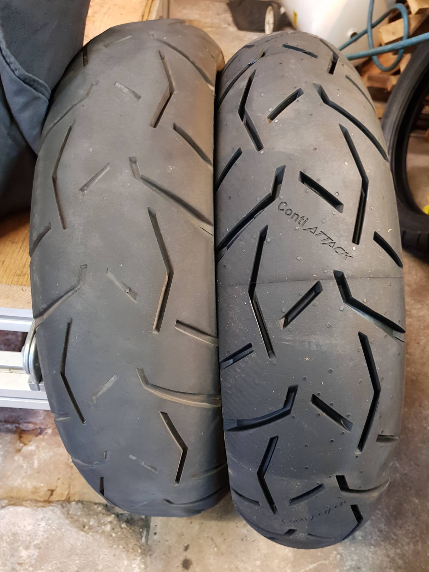 Der Hinterreifen ist aber auch wirklich fertig, vorne würde er noch gehen, hat aber auch ein leichten Sägezahn, von daher kommt der halt auch neu.