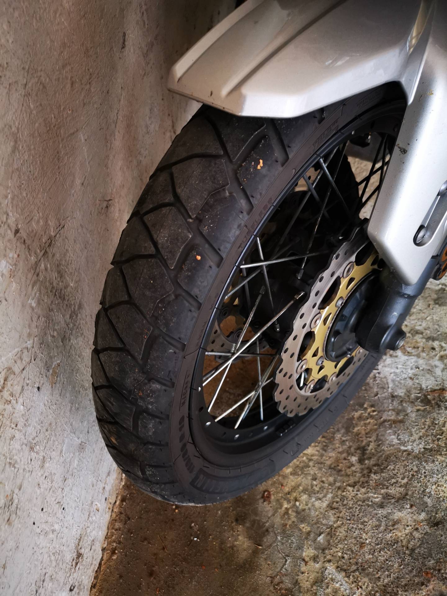 Nach 14.000km habe ich mich nun von der Bridgestone Originalbereifung getrennt und den Anakee Adventure aufziehen lassen. Da ich kein Heizer sondern eher Cruiser bin und nur gelegentlich verhalten sportlich fahre störte mich nicht, dass er im Test in Punkto Alltagstauglichkeit nicht bei den Siegern war. Nasshaftung und die doch wenigstens einigermaßen Endurooptik mit guter Laufleistung waren mir wichtiger.