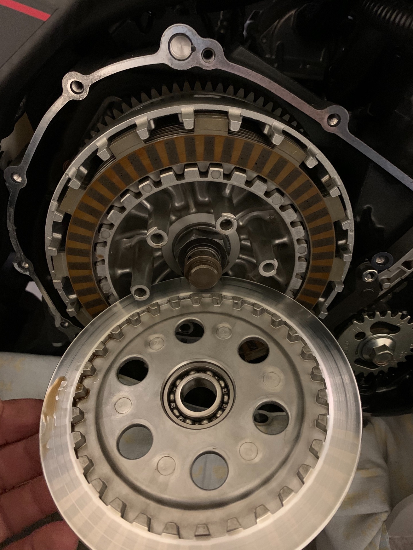 Dann kam mein Schrauber um die Ecke ( Gott hab ihn Seelig ) und meinte direkt " leg die mal auf die Seite und schraub den Kupplungsdeckel ab" sostand ich da mit zuckenden Schultern.