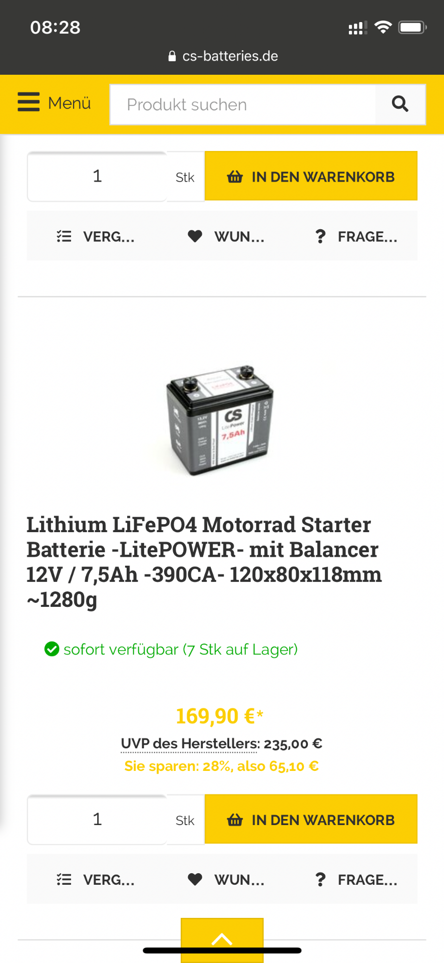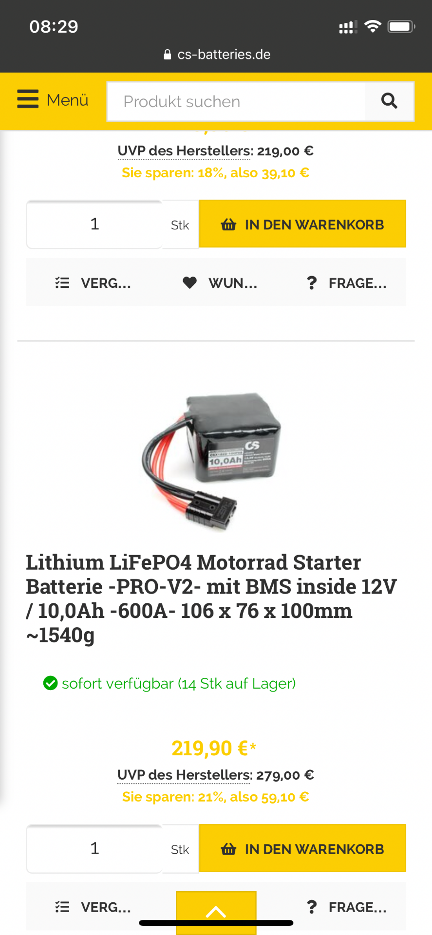 Shido oder andere LiFePO sind ja meist 7,5Ah bauartbedingt.