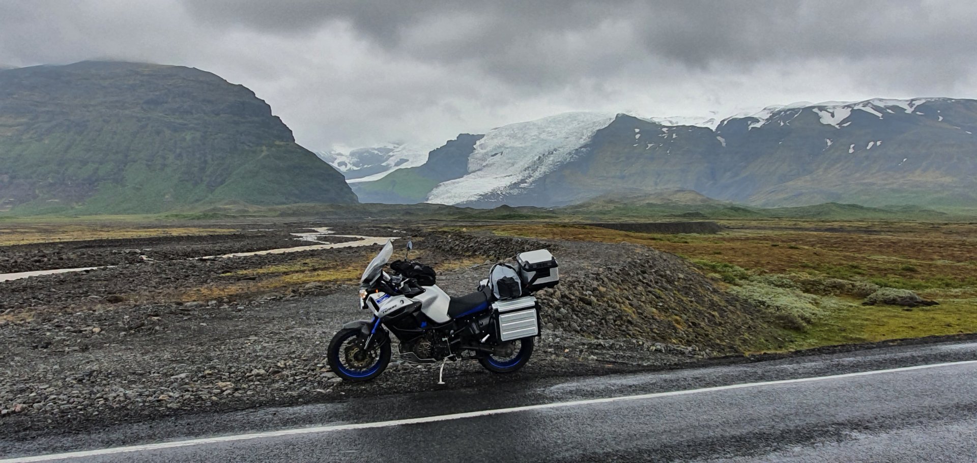 Dann übersieht zwei Tage vor Abreise eine junge Damen meinen Freund Sven. Ergebnis: ein paar Prellungen/Schürfwunden (nix Ernstes), und seine GS Totalschaden. Nicht lange überlegt (ich wollte eh meine AT zum Nordkapp führen), sondern fix die XT hergerichtet: neue Heidenaus standen noch in der Garage, fix montiert, Koffer dran, neues Öl rein, fertig, Sven konnte mit meiner XT reisen.