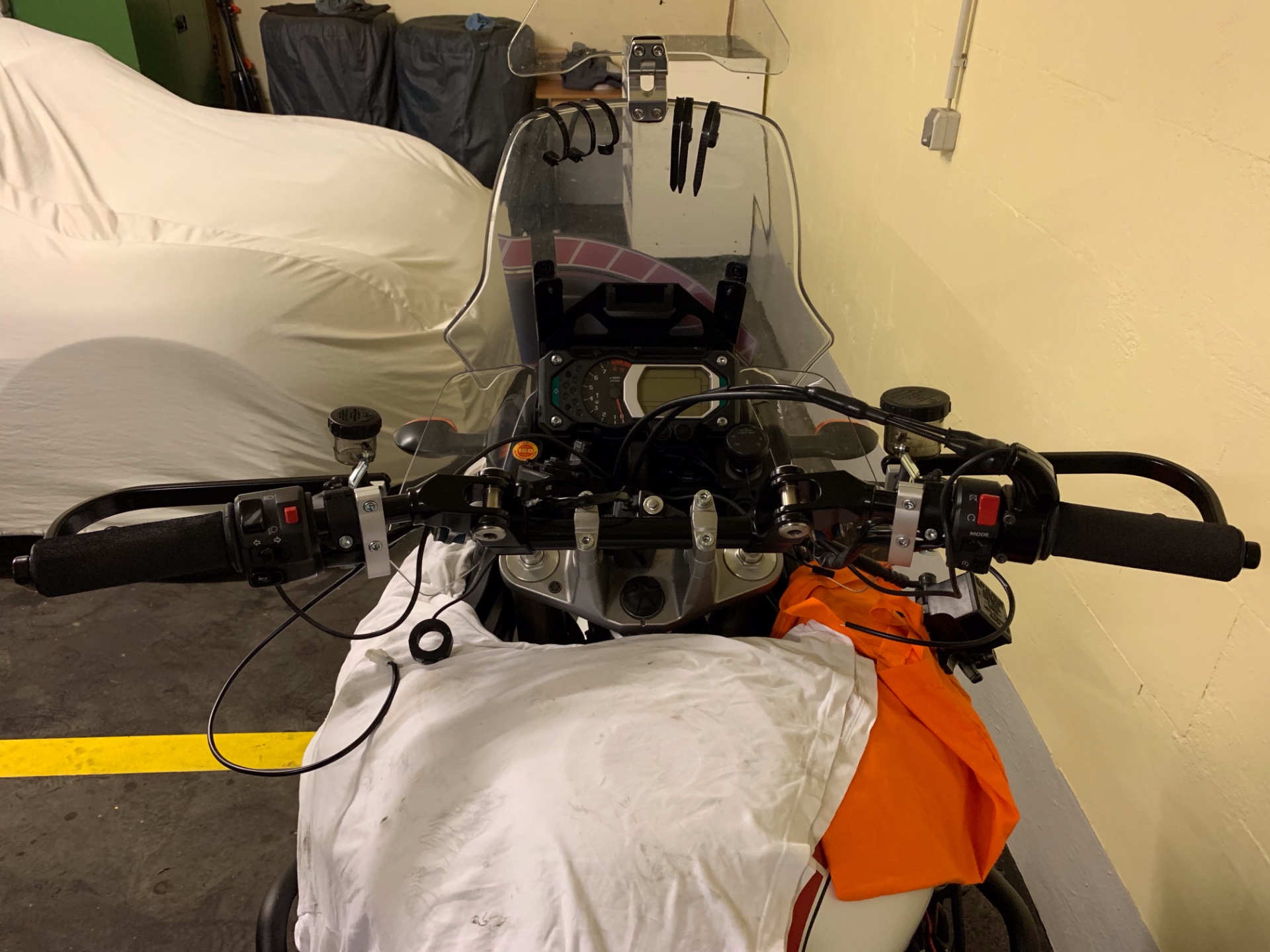 Er passt auch ohne Lenkererhöhung, allerdings ist dann nur wenig Platz zwischen Tank und "Lenker Stoßdämpfer".