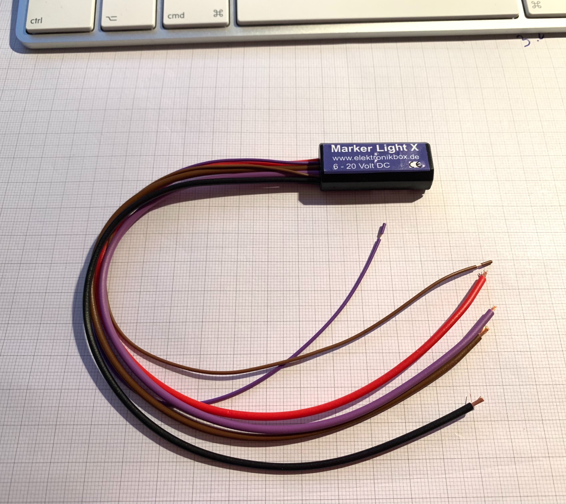 Dann das Kabel der Begerznungsleuchten durch das Modul schleifen und die Blinker mit Dauerstrom befeuern.