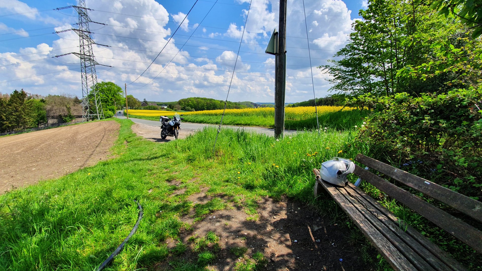 Möppi auf dem Parkplatz abgestellt und ein paar Meter dem Wanderweg gefolgt, wie das so ist mit Möppiklamotten wandern......