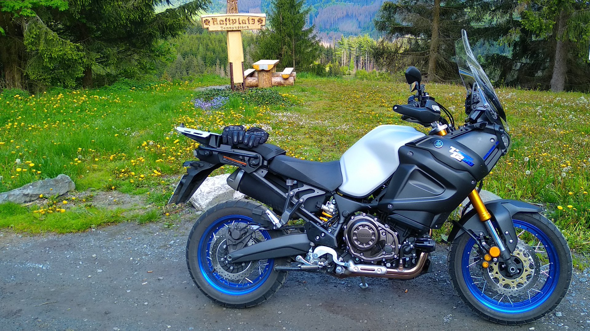 Möppi auf dem Parkplatz abgestellt und ein paar Meter dem Wanderweg gefolgt, wie das so ist mit Möppiklamotten wandern......