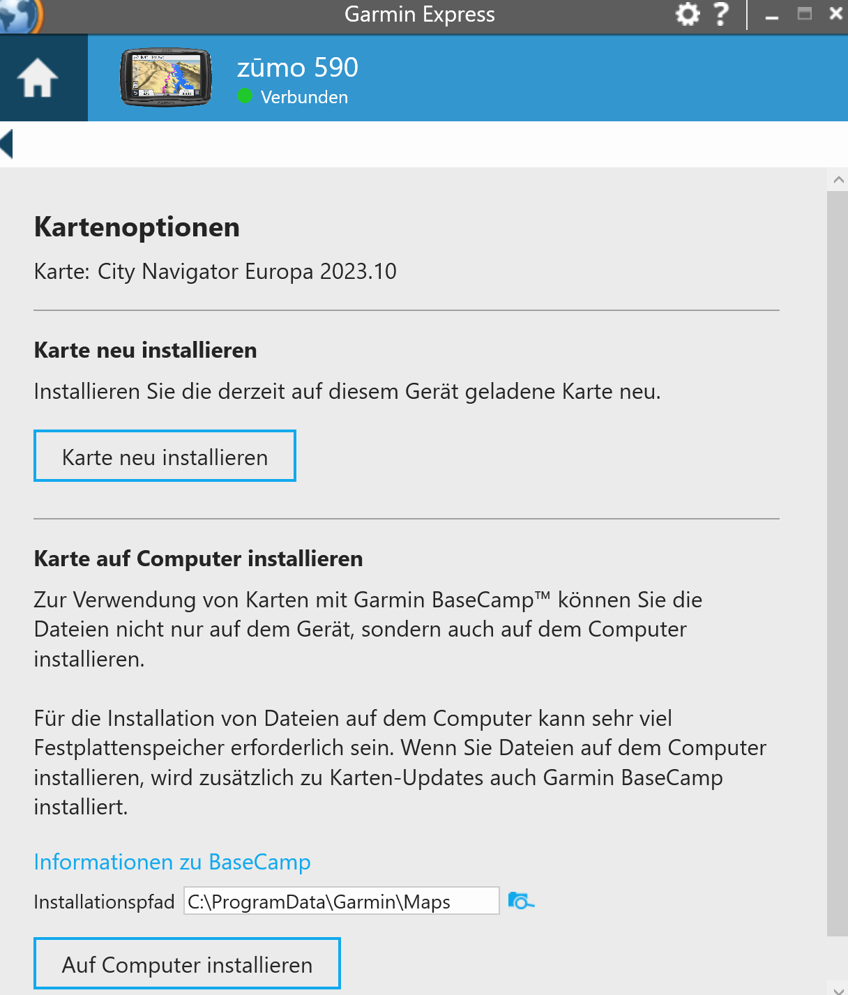 beim letzten Kartenupdate hatte ich nur mit Frankreich Probleme. Die kleinen Straßen wurden in Basecamp nicht angezeigt. Ich habe dann das Kartenmaterial nochmals nur auf dem PC installiert und dann hat es funktioniert. Irgendwie schon komisch. Aber jetzt ist alles gut.