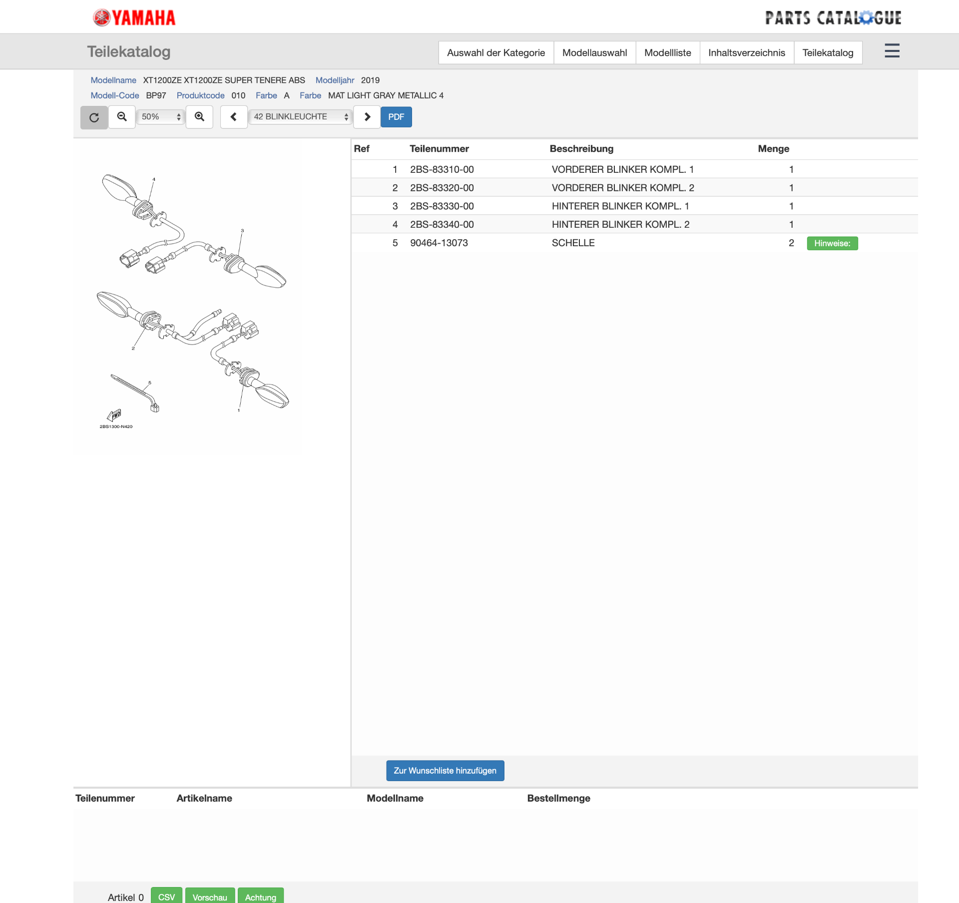 Die Teilenummern der deutschen Yamaha Seite