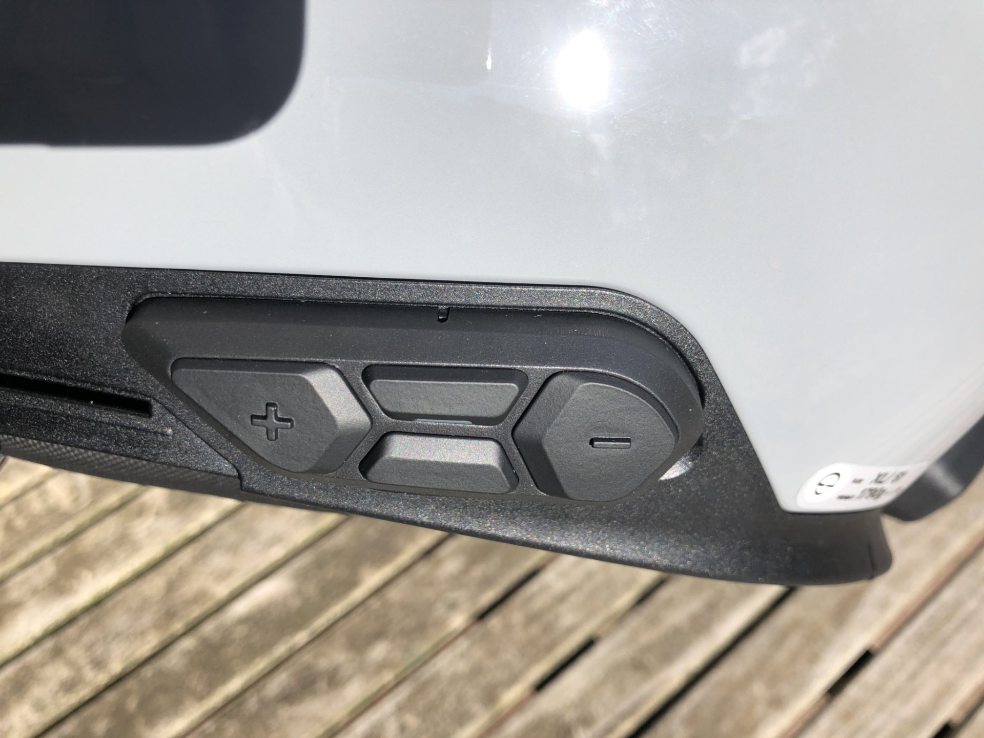 Apropos Kabel, die Zentraleinheit hat neben den beiden minimalistischen Antennensteckern einen Satz Federkontakte (mit Pendant/entsprechende Kontaktfläche im Helm), vermutlich für Lautsprecher und Mikro. Das ist evtl. langfristig eine Verbindung, die zu Problemen führen könnte (Korrosion, Feuchtigkeit aufgrund fehlender Abdichtung gegen Regenwasser, Schmutz, nachlassender Federkontakt) … muss man also mal beobachten. Grundsätzlich hatten das meine alten Sets, die seitlich am Helm raufgeschoben waren, natürlich auch und im Grunde hat das mehrere Jahre funktioniert.