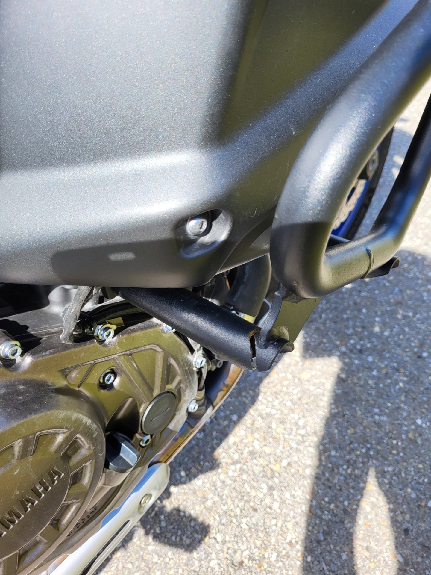 - Zur Montage: Die Sturzbügel werden an den Aufnahmepunkten der originalen kleinen Plastikbügel befestigt, letztere lassen sich auch in Verbindung mit den großen Bügeln wieder montieren (also vmtl. auch die Variante von OTR, falls die jemand hat). Bei mir kommt die Wasserpumpenabdeckung von DSBikeProtection dazu, auch die lässt sich trotzdem noch montieren. Die Passgenauigkeit der Sturzbügel ist hunderprozentig, nix verspannt, nix hakt, nix ist Mist. Auch die rechte Seitenverkleidung lässt sich noch demontieren, ich würde aber im Zweifel wahrscheinlich ein Tuch zwischen Verkleidung und Sturzbügel klemmen.