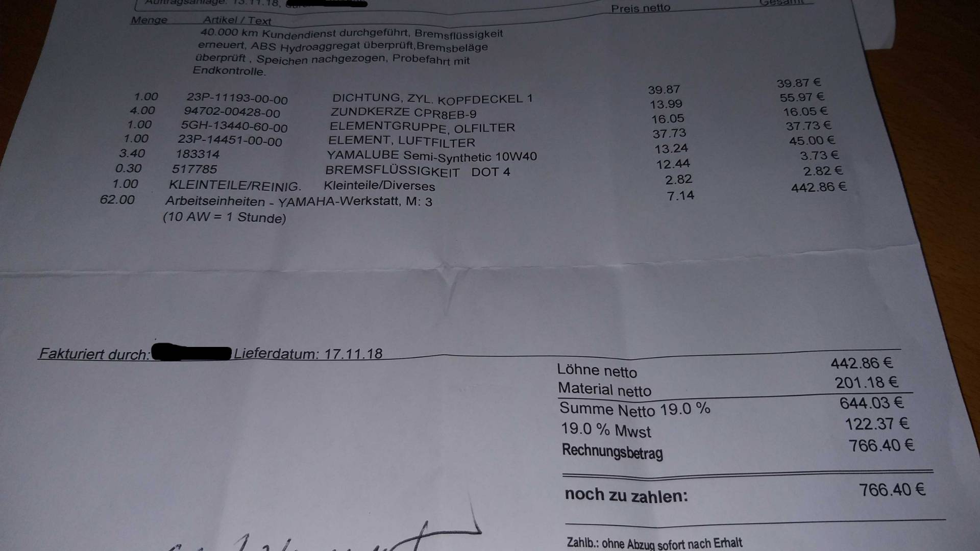 Das kann ich nicht beurteilen. Aufgrund der großen Anzahl an AW bei den Inspektionen ist der Preisvorteil durch die preiswerteren AW gegenüber bspw. BMW wieder weg. Und die Yamaha-Ersatzteile werden ja auch von Engeln aus Goldstaub gepresstIrrlander hat geschrieben: Yamaha hat die Zeitvorgaben sehr großzügig bemessen.