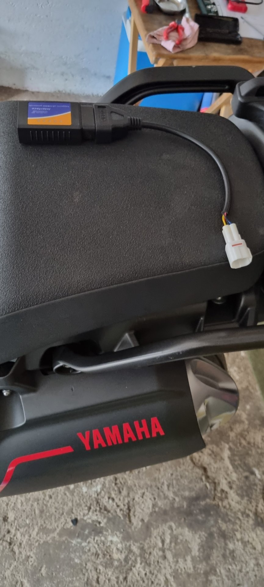 Unter der Sitzbank ist bei der DP 07 der Servicestecker für das ABS Steuerteil.Der 4 polige Canbusstecker ist rechte Seite neben dem Werkzeug.