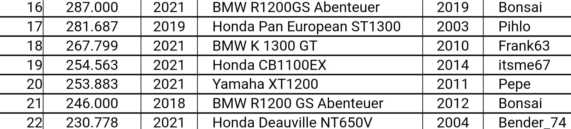 Gibt es denn von Pepe eine Bild des Tachos ihrer XT?Helmut hat geschrieben: Mi 27. Dez 2023, 15:09 Die XT von Pepe ist mit 265.000 km in denRuhestand gegangen und wurde mit einer African Twin ersetzt.