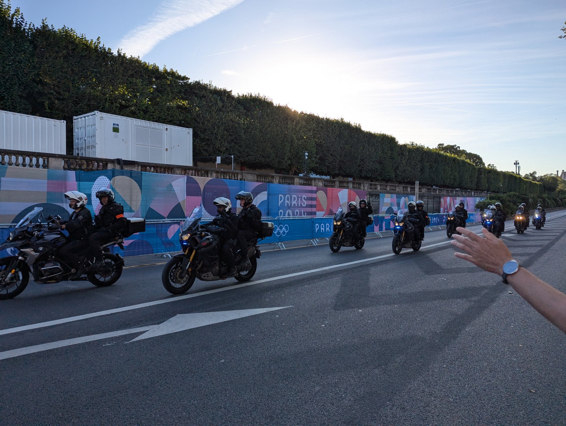 Heute eine ganze Meute (ca 6) als Vorauskommando beim olympischen Marathon in Paris