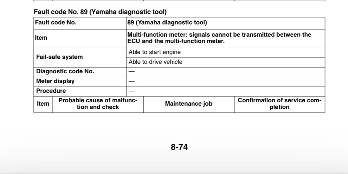 Im Wartungs buch für DP01 steht kein code 89 genannt.