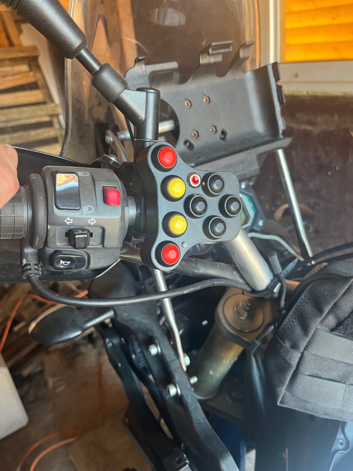 Bei mir wird mein Galaxy Tab active 3 gesteuert. Anderen Moped ein Smartphone. Also osmand, Spotify und wenn man hat kurviger oder sowas. Läuft über Bluetooth, Kabel bringt nur den Strom.