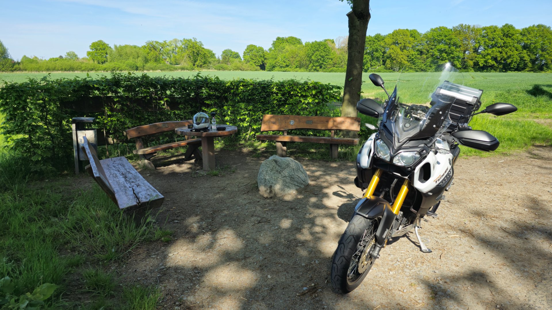 Da wollte ich meinen Kaffee schon immer mal trinken. Und da es allen E-Bikern heute wohl zu windig war, gab's auch kein Gemecker
