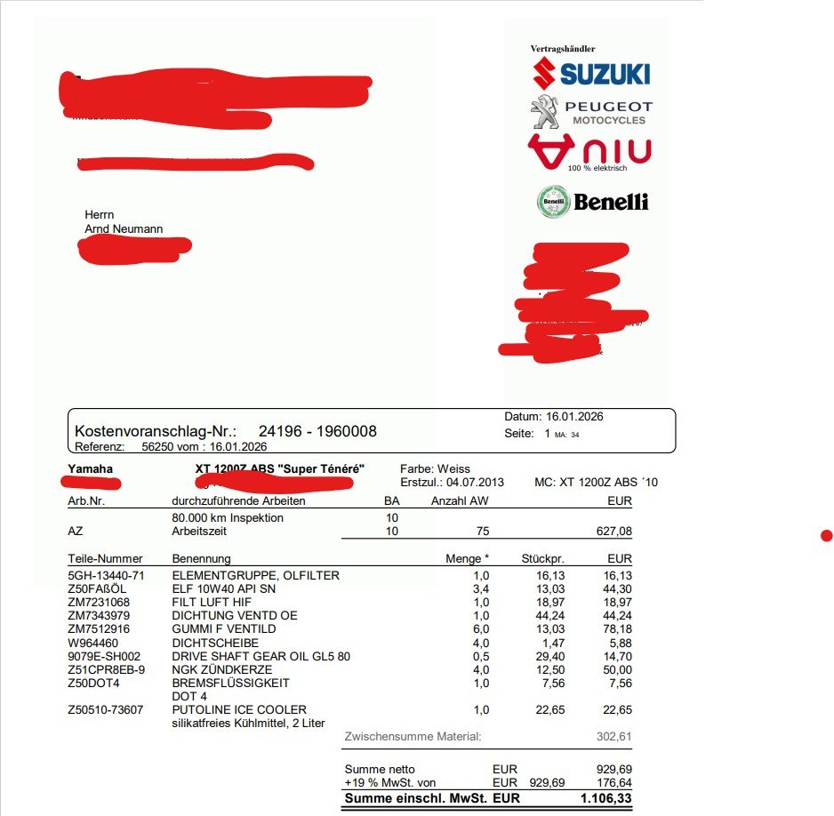 Dafür nahm meine Werkstatt (ehem. Yamaha-Händler-jetzt freie Werkstatt) 410,00 Euro. Da dachte ich schon - ganz schön viel.
