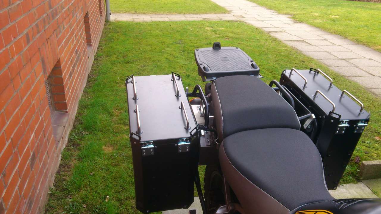Der Koffer auf der linken Seit scheint zu kippen, ist da ein Problem mit dem Halter? Ansonsten machen die Koffer auf dem ersten Blick einen guten Eindruck. Ob sie tatsächlich das halten was sie versprechen wirst du sicher bei ersten großen Regen auf großen Fahrt erfahren. Bin gespannt auf die Erfahrungen.