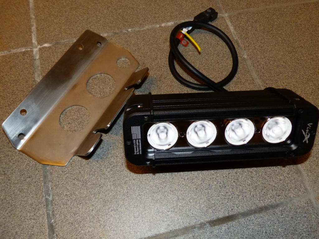 Wenn man die BMW-LED´s die man übrigens baugleich (von Hella) auch für die neue Abenteurer-Kathi ordern kann, dort montieren will wird man so einen Winkel basteln müssen, darauf 2 Klötzchen mit Loch und da dann die Scheinwerfer drauf.