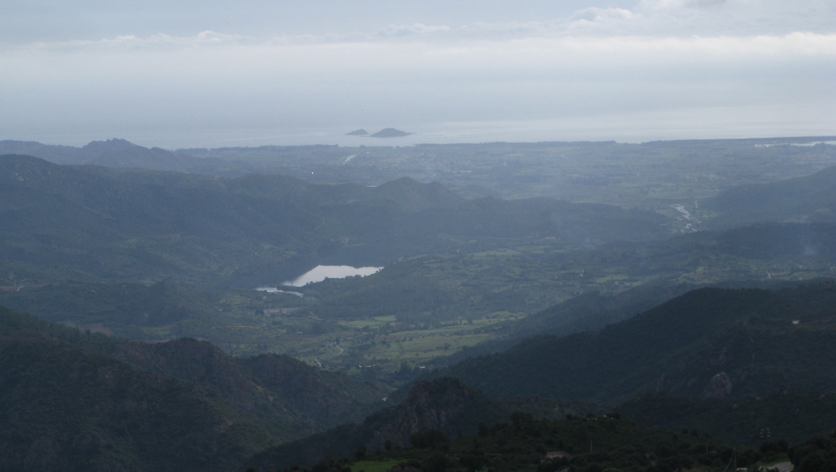 Wir befuhren die SS125 relativ unspektakulär weiter bis Siniscola. Wir wechselten auf die SP3 und fuhren in die Berge. Die Schlechtwetterfront war jetzt schon zu sehen. Bei der Auffahrt nach Santa Anna mussten wir bereits durch den Nebel. Zum Glück riss es nach Santa Anna wieder auf und die Strecke am Monte Albo entlang war wieder ausgesprochen sehenswert.