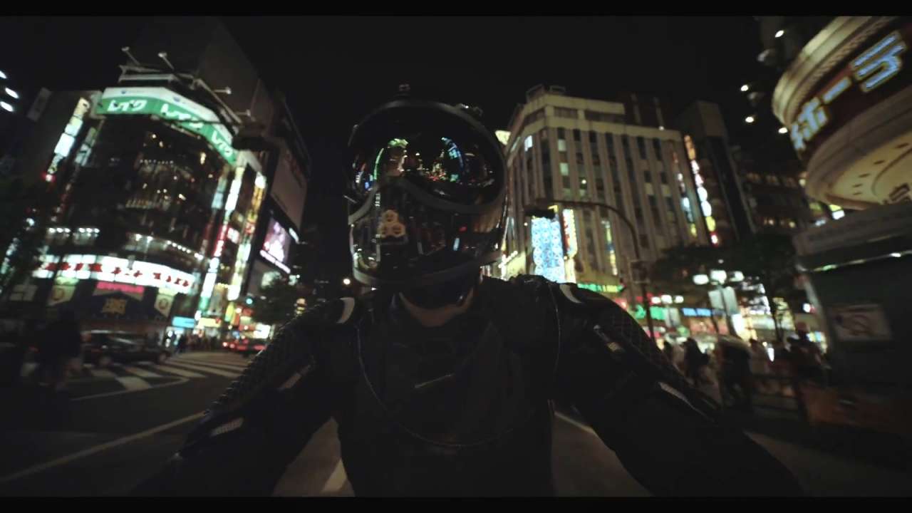 Habe da mal Screenshots draus gemacht, weil ich wissen wollte, ob sich in der Brille des Fahrers was spiegelt... leider nicht. Hier sieht man die Schatten von Außenspiegeln, die relativ steil und weit weg vom Lenker zu stehen scheinen, dazwischen wohl der Schatten des Kameragehäuses. Wenn die Aufnahmen tatsächlich mit dem neuen Mopped gemacht wurden, würde das Sportler oder Streetfighter schon mal unwahrscheinlich machen.