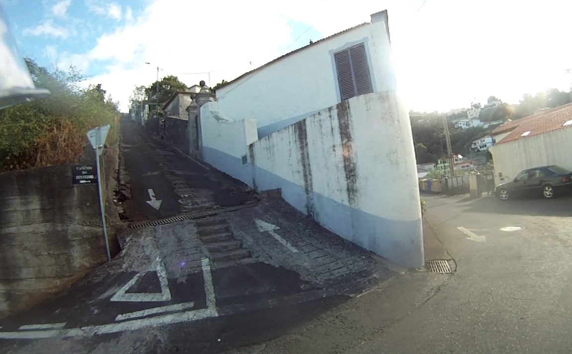 Auf einem weiteren Gefälle hatte ich auf einer Strecke 315m einen Höheunterschied von 90m. Dies ergibt ein druchschnittliches Gefälle von 28,5%. Auf dieser Strecke gab es aber deutliche Unterschiede im Gefälle. Im unteren Abschnitt existierten in der Straßenmitte Treppenstufen für die Fußgänger, dort war es auch deutliche steiler.