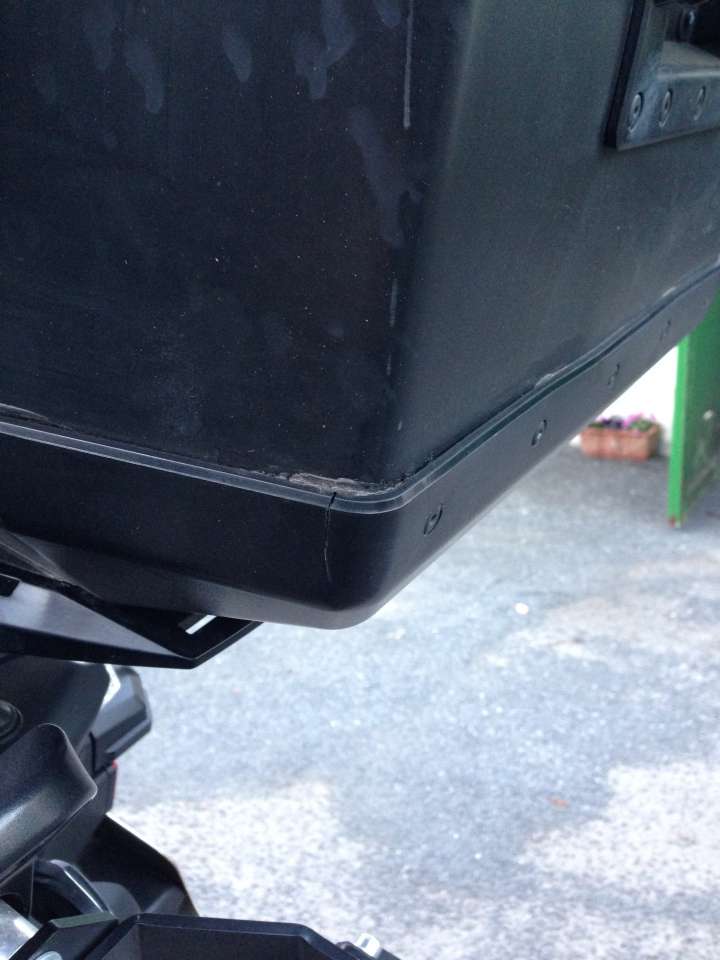 Tja. Zu früh gefreut. Beide hinteren Kunstoffecken an der Bodenwanne des Topcase gerissen.