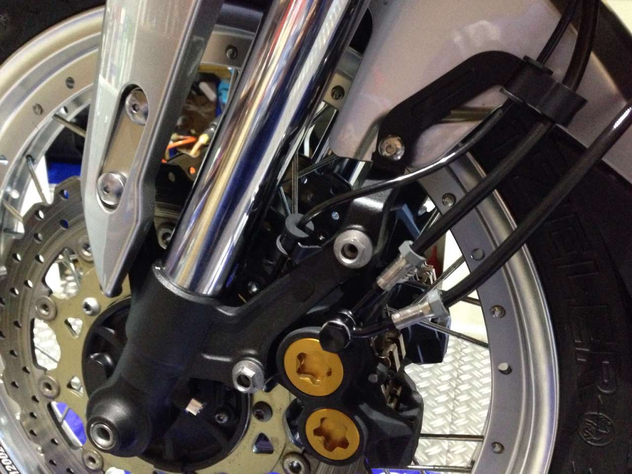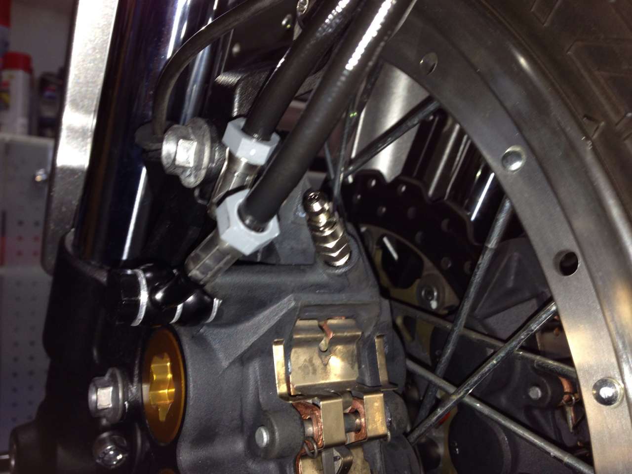 Nur die Leitungen zu demontieren war schon aufwendig....fand ich zumindest verglichen mit meinen anderen Mopeds älteren Baudatums. Danach die Bremssättel gereinigt und frisch mit TRW Lucas Sinter Belägen belegt. Danach hab ich die Leitungen montiert und dank Stahlbus Entlüfterventilen war das auch gar nicht so wild mt dem entlüften.....n guten halben Liter hab ich dennoch gebraucht. Druckpunkt.....knackig! Kurze Probefahrt gemacht....richtig reingreifen is ja noch nicht...trotzdem deutlich besser als vorher.
