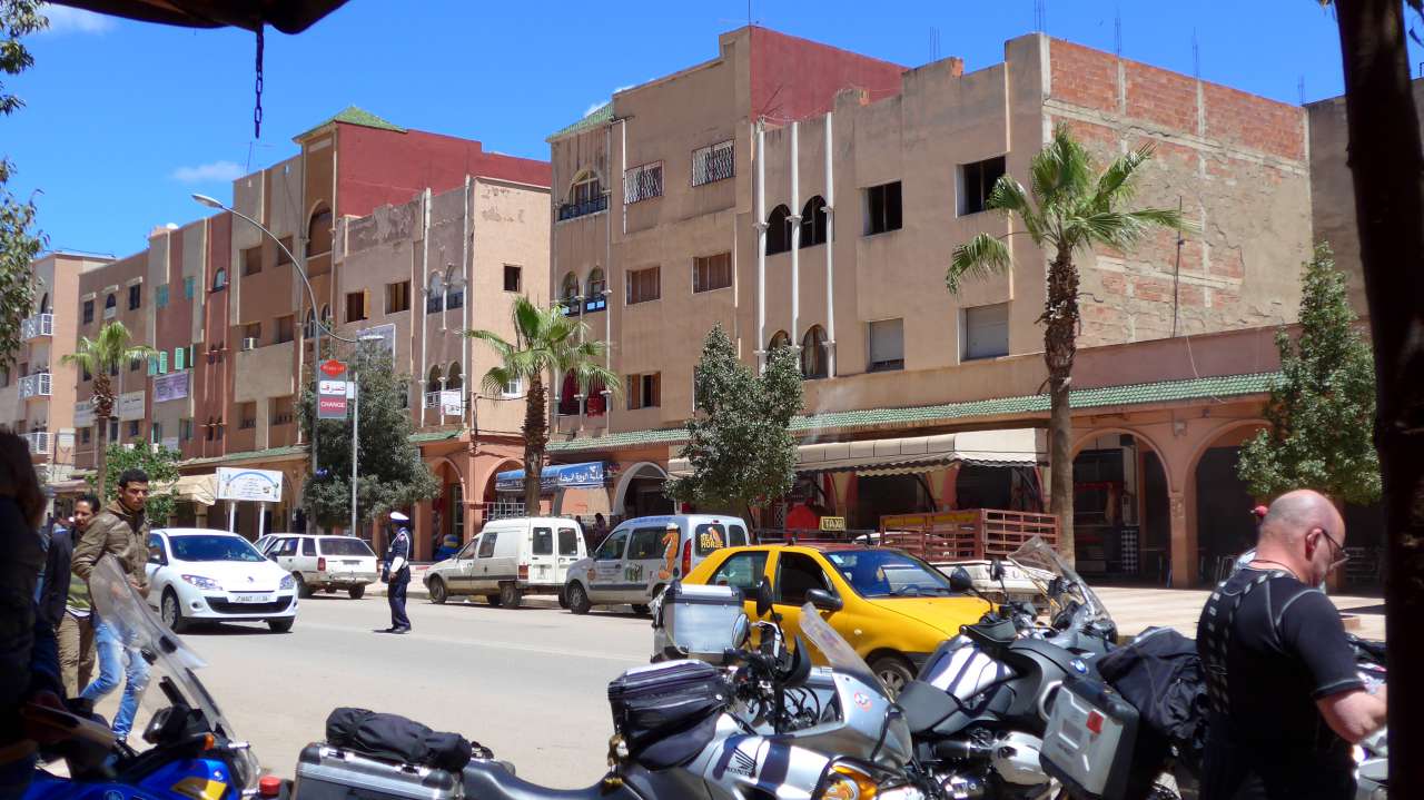 Da die Polizei den Konvoi nicht schütze, durfte man an roten Ampeln oder in Kreisverkehren nicht zögerlich sein, denn die Marokkanischen Autofahrer nutzen jede Lücke. Eine Afrikan Twin Fahrerin wurden dann auch von einem Autofahrer angefahren. Ein geprellter Arm und ein verkratzter Sturzbügel waren die Folgen.