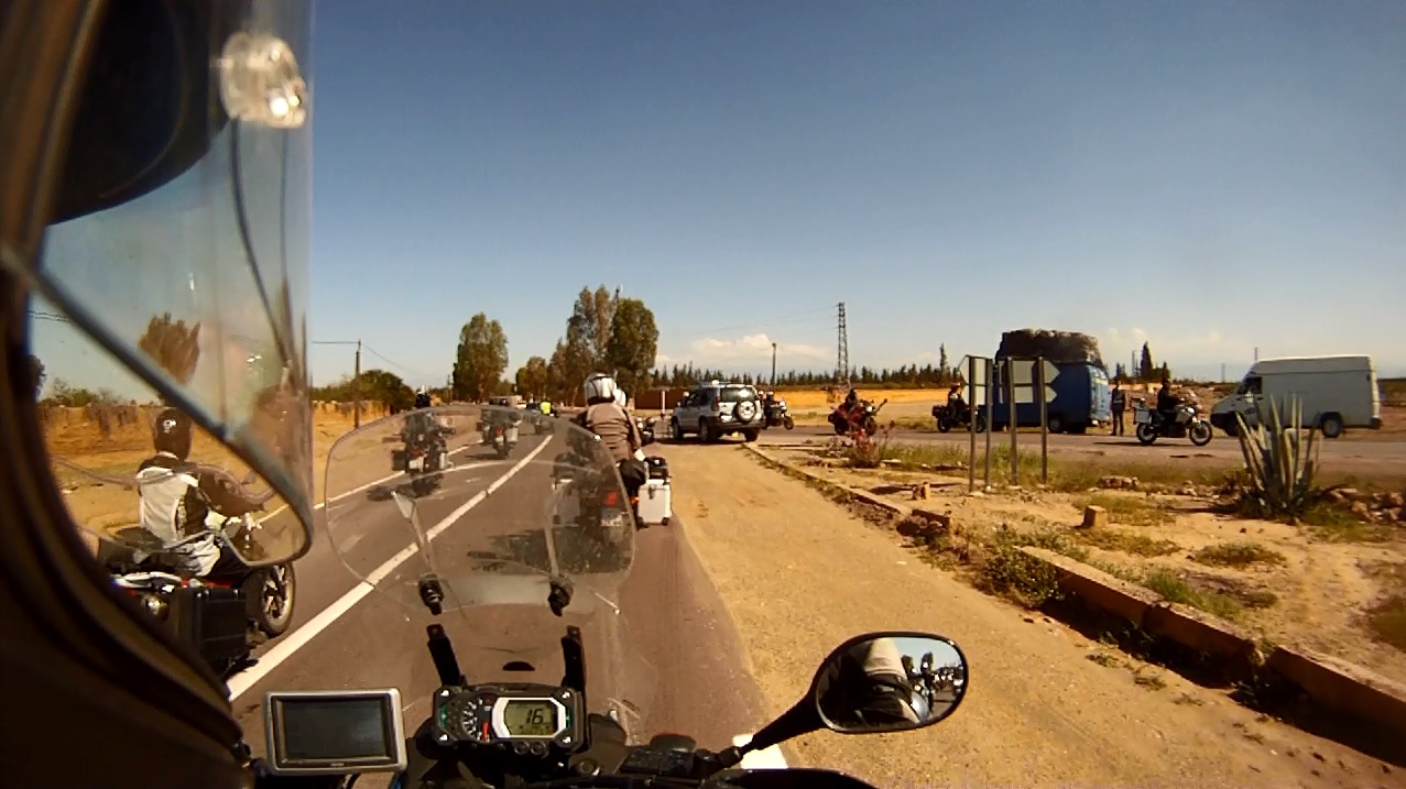 15km nach den Wasserfällen wurde die Straße breiter die Kurvenradien größer und wir kamen zügig durch das Hügelland bis wir wieder auf die N8 trafen, auf der wir das Geradeausfahren üben durften. Schnell erreichten wir nach 333 km den Sammelpunkt zum Konvoi in Marrakesch.