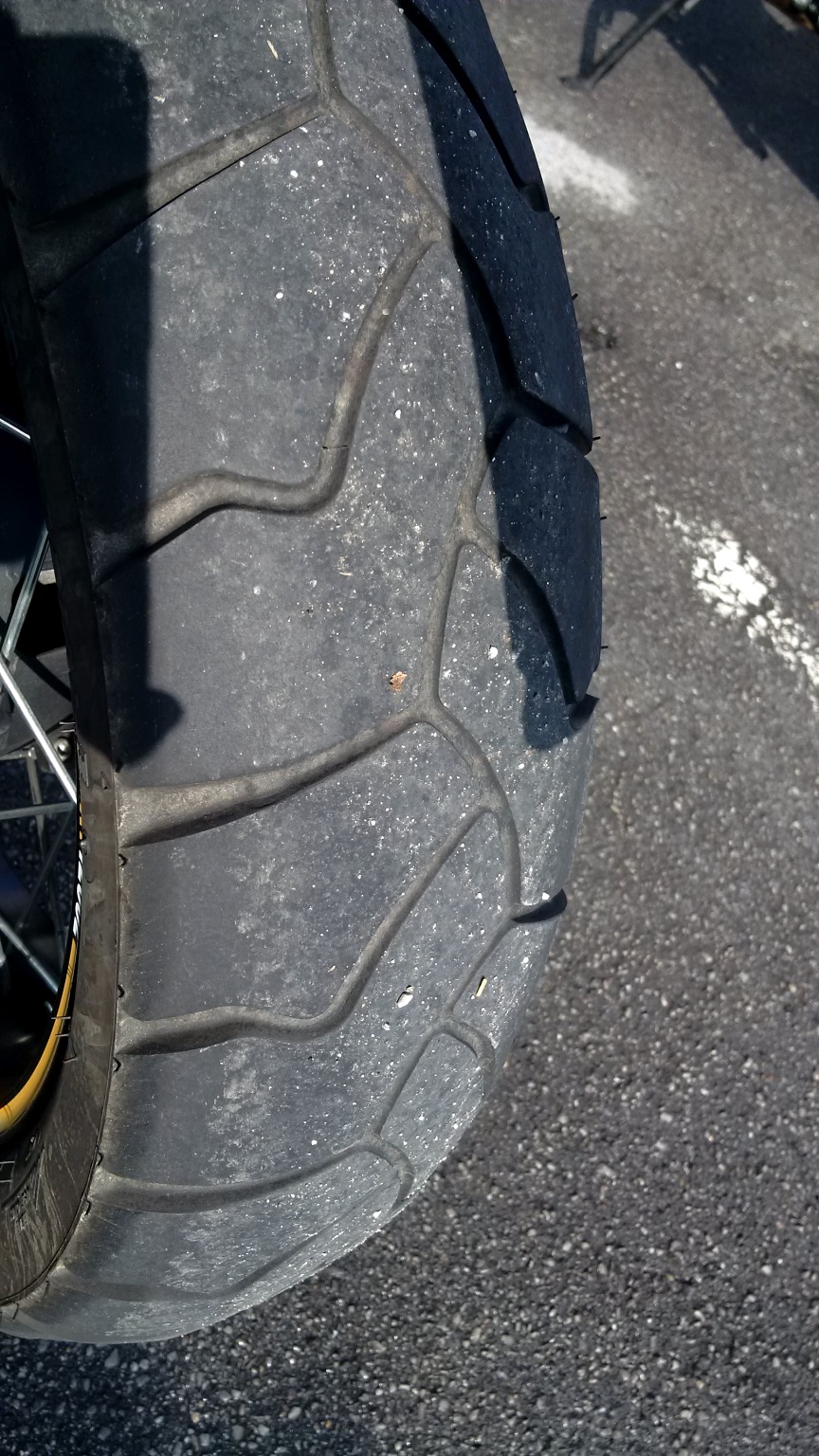 (hat eventuell noch gut 1 mm, der Vorderradreifen wird noch für 6-7000 KM gut sein.