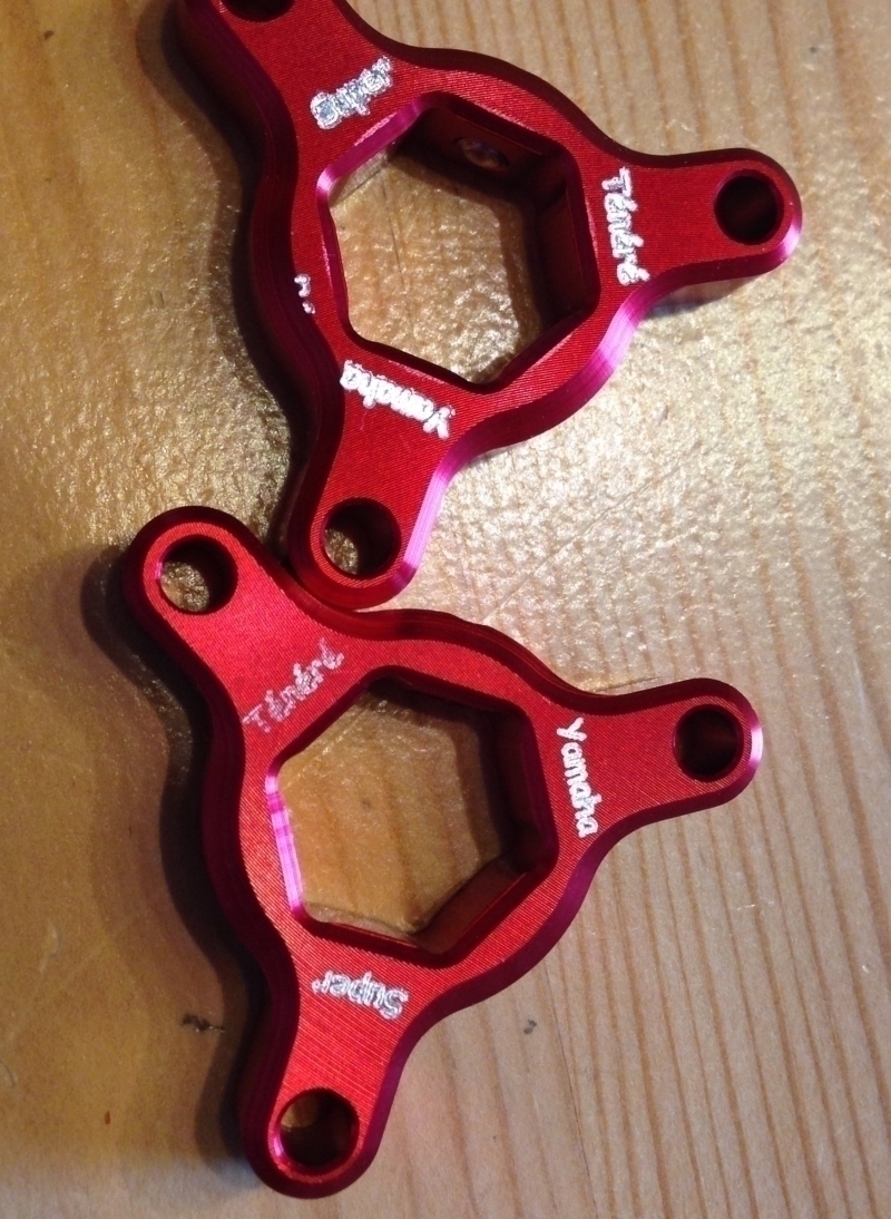 Ich habe mir mal aus der Bucht (aus HongKong) günstige Alu-Gabelversteller geordert und im CAM geschaut wie das mit der Gravur aussehen könnte.