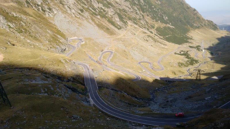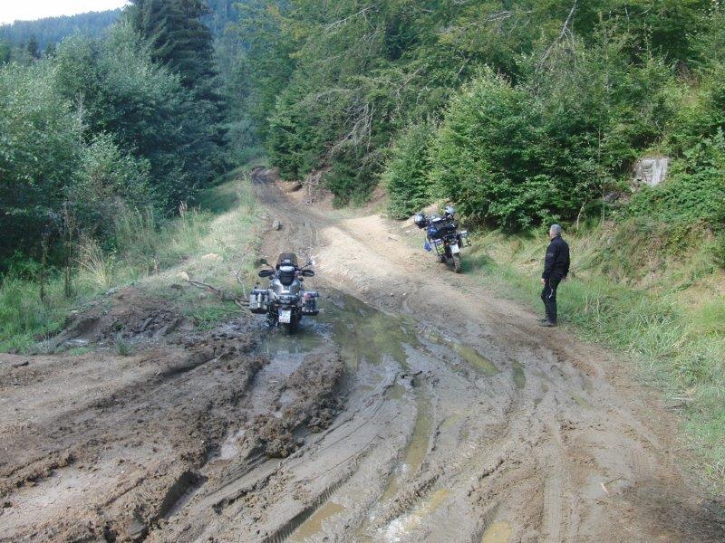 Am 7.9.2015 fuhren wir nach drei Übernachtungen (Untergriesbach bei Passau in Deutschlandund zwei in Ungarn, Tata und Hajduböszörmey) im Norden Rumäniens über den Grenzübergang Csengersima-Petea nach Rumänien. Die Unterschiede der Straßenqualitäten zwischen Ungarn und Rumänien waren sofort deutlich zu spüren. Die erste größere Stadt, durch welche wir fuhren war Satu Mare. In diesem Teil Rumäniens gibt es viele kleine Dörfer mit kleinen zerfallenen Häuschen, aber auch viele Prachtbauten, die direkt nebenan stehen. Sehr oft sah man alte Leute, die auf einer Bank vor ihrem Haus saßen. Die Kinder winkten fast immer, die Jungs machten oft die Gasgriffhand. Fernstraßen sollte man in Rumänien tunlichst vermeiden, da die Überlandtrucks immer sehr zügig, auch in den Ortschaften, unterwegs sind. 50 fährt dort niemand. Wir waren selbst in den Ortschaften immer recht flott unterwegs. Wenn du in Rumänien einen weißen Mercedes Sprinter Bus mit rumänischen Kennzeichen im Rückspiegel siehst, dann solltest du am besten Land gewinnen. Die überholen selbst in den unübersichtlichen Kurven innerhalb der Ortschaften mit 90 Sachen. Probleme mit der Polizei hatten wir aber während der ganzen Reise nicht. Ein kleiner Tipp beim Überholen der Autos und Lkw’s. Vor den unbeschrankten Bahnübergängen bremsen die immer komplett runter, da sie sich ansonsten die Achsen abreißen würden. Da kannst du locker überholen, aus dem Sattel im Stand darüberbügeln. Natürlich darf kein Zug kommen. Die meisten Strecken sind aber ohnehin stillgelegt.
