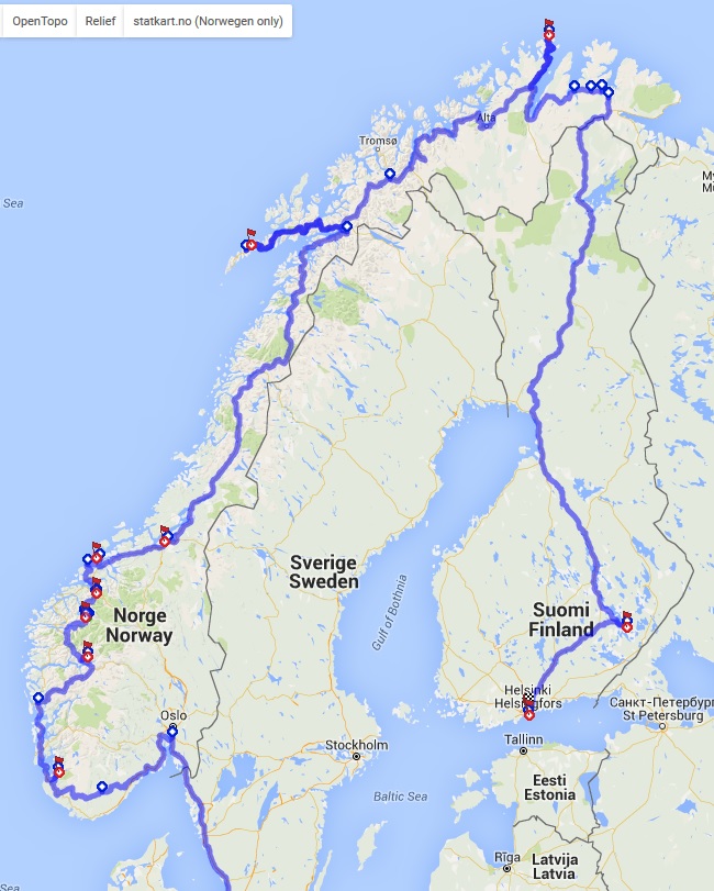 Es könnte auch möglich sein das wir (ein eventueller Mitfahrer hat sich schon gemeldet) uns in Helsinki treffen und gegen den Uhrzeigersinn fahren. Würde dann wahrscheinlich über Stockholm oder Tallinn mit der Fähre anreisen. Von Deutschland aus ist mir die Fähre mit gut 500-600€ etwas zu teuer.