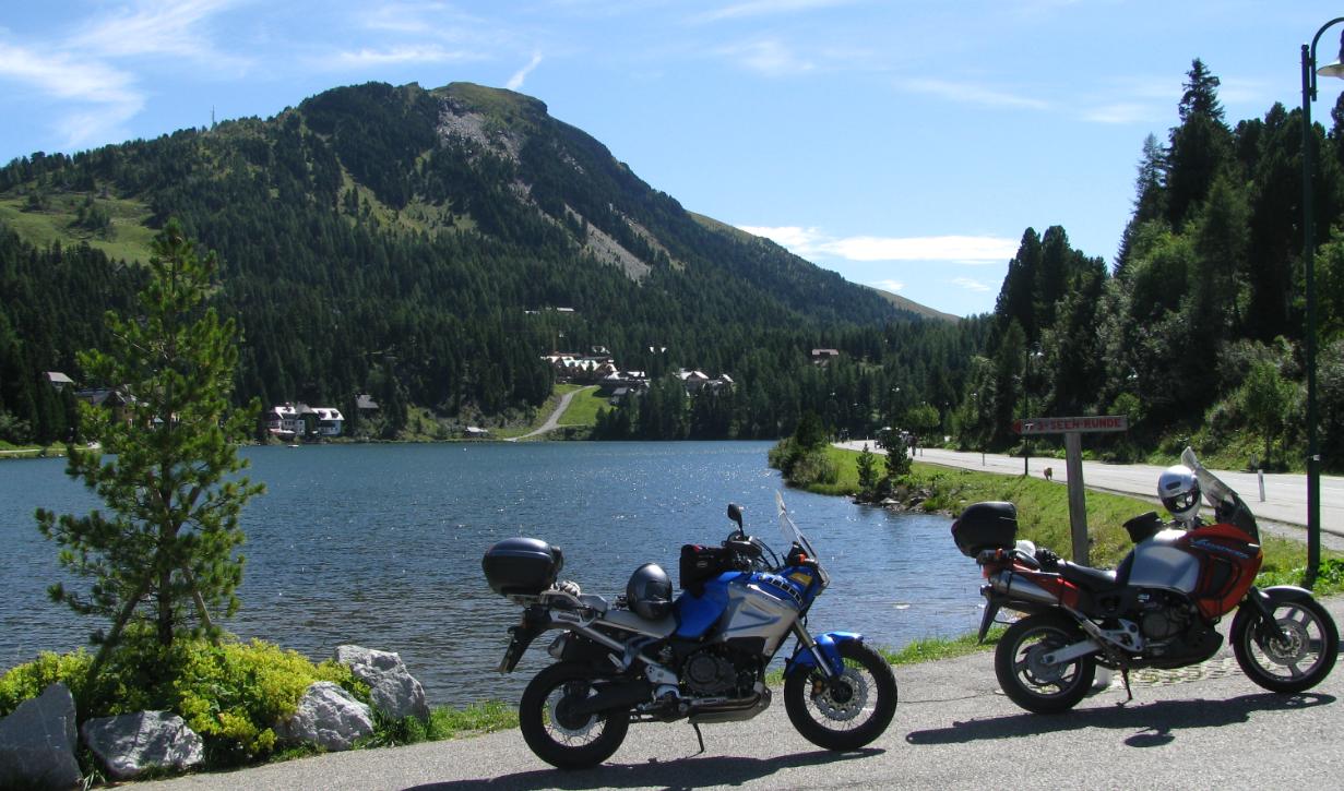Wir starteten die Tour mit dem Überfahren des Gailbergsattels. Wir folgten der B100 und bogen rechts auf die B87 ab. Der nun folgende Kreuzbergpass verblüffte uns mit tollen Kurvenradien und einem sehr guten Asphalt. Weiter ging es über die Windischer Höhe und dem Moschbacher Boden Richtung Mittelstädter See. Wir folgende der B88 und der B95 Richtung Turracher Höhe, bogen aber vorher zur Nockalmpanoramastraße ab.