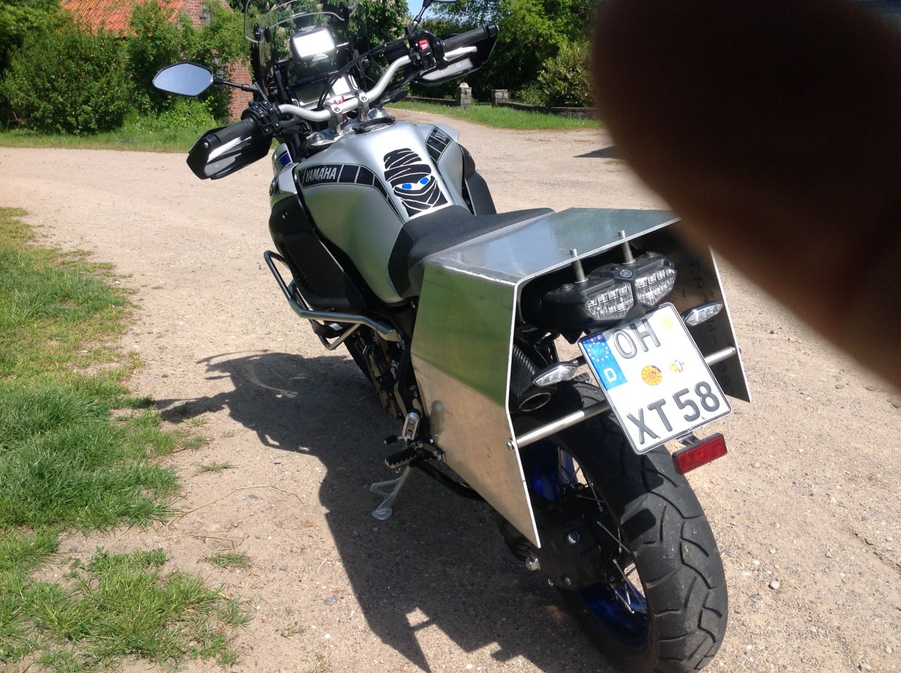 Bin gerade mit der Alubrücke im Rohbau fertig geworden,sollen sw Motech Dakar Taschen dran montiert werden.