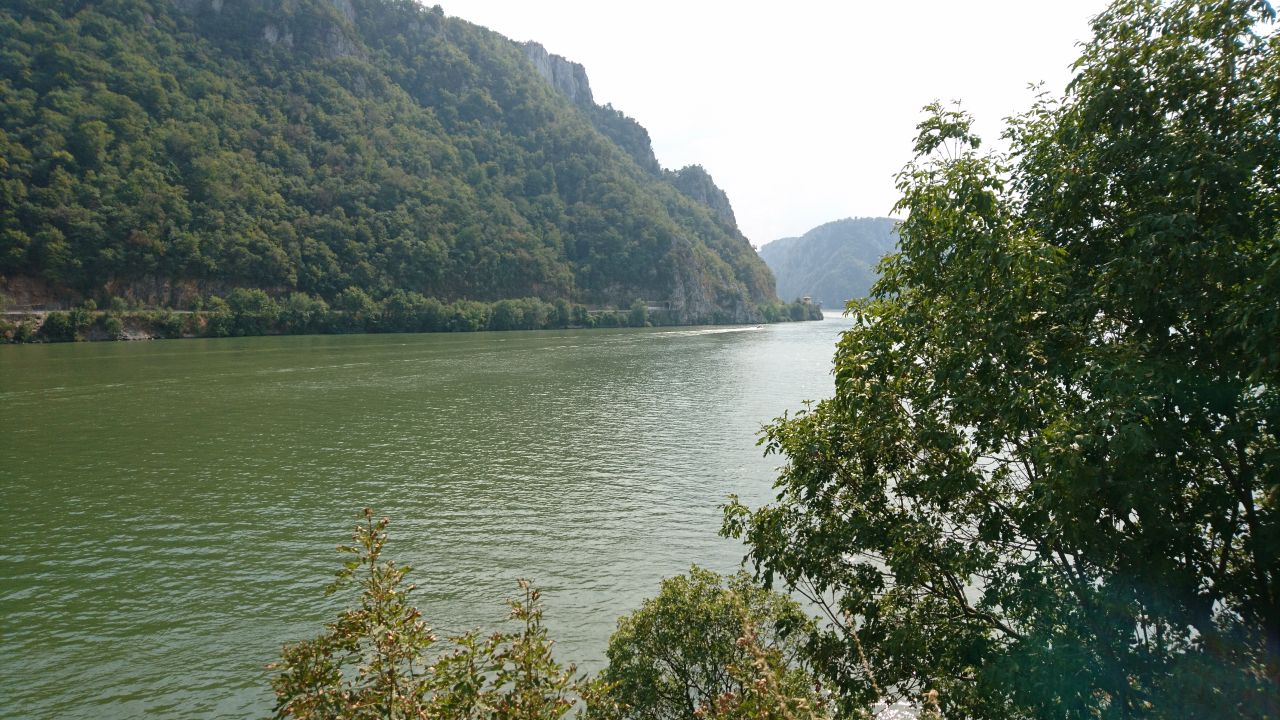 Später dann war das Ufer von Hotels und Pensionen gesäumt, ein bisschen wie früher in Jugoslawien die Küstenstraße. Der Donaudurchbruch war dann beeindruckend, auch weil der Fluss vorher fast wie ein See wirkte. Leider gab es keinen schönen Aussichtsplatz. Einen guten Kilometer weiter liegt das Kloster und kurz danach folgt das in den Felsen geschlagene Antlitz eines alten Herrschers. Hier war Halligalli wie am Ballermann! Via Intercom haben wir dann kurz besprochen, dass wir lieber weiterfahren und auf den Trubel bei 35 Grad verzichten. Dann gings es bei Orschowa wieder ins Innenland Richtung Herkulesbad zu unserer Unterkunft. Da Peter diesmal den Wegpunkt nicht genau gesetzt hat waren wir zunächst etwas orientierungslos. Aber Fragen kann helfen und so sind wir dann doch beim Hotel angekommen. Nach dem Reinfall gestern wieder eine feine Unterkunft, tolle Zimmer, nette Wirtsleute und sogar mit Pool und gekühlten Getränken. Zum Essen waren wir aushäusig, es gab Spaghetti und dazu jeweils einen Salat. Die Krönung war die selbstgemachte Limonade, davon brauchten wir jeweils 2 Gläser gegen den Durst, einfach lecker! Morgen wird’s eine kurze Etappe von ca. 130 km, eventuell noch teilweise geschottert, aber es wird kein langer Fahrtag werden. Also auch etwas länger schlafen