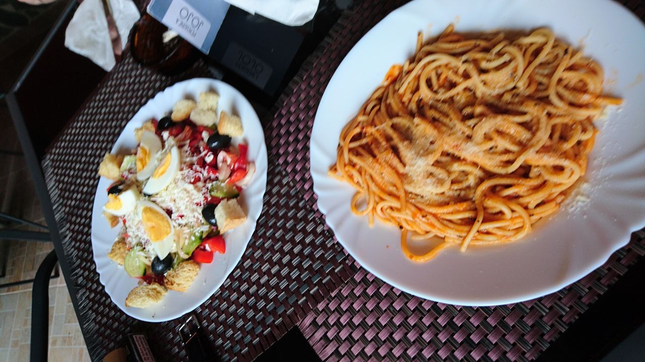 Nach der Grenze waren es noch knapp 50 km bis zur Unterkunft, einem Motel mit Tankstelle dicht an der Straße im Örtchen Biled. Die Zimmer sind soweit okay, aber Peter musste noch einmal zur Rezeption und meckern, weil kein Wasser aus den Hähnen kam. Auch das klappte dann. Leider gab es kein Restaurant und auch der Erkundungsgang ins Dorf war essentechnisch nicht erfolgreich. Also kurz in das Magazin Mix rein und Getränke (kein Bier!) und für mich Tucs und für Peter ein Erdbeercroissant gekauft.