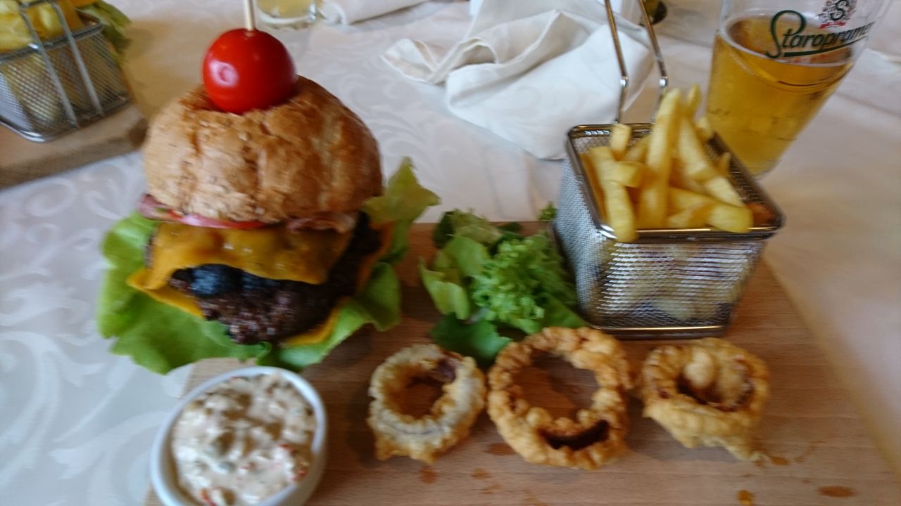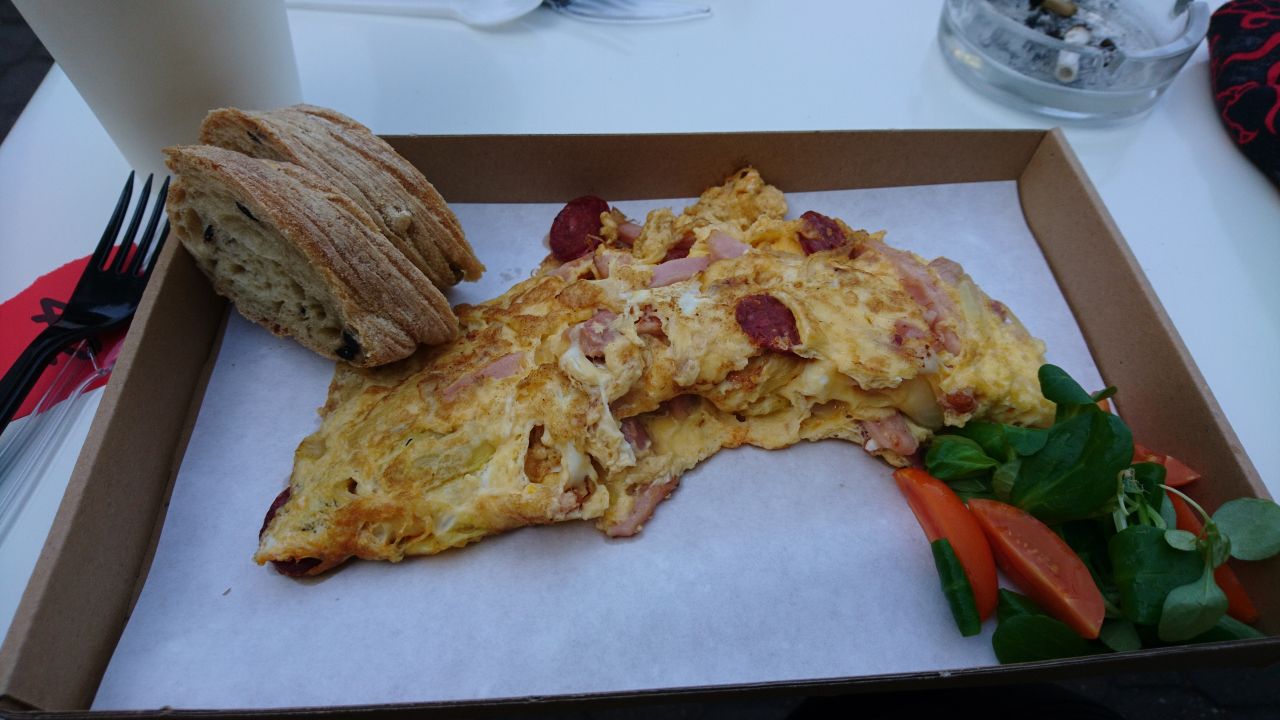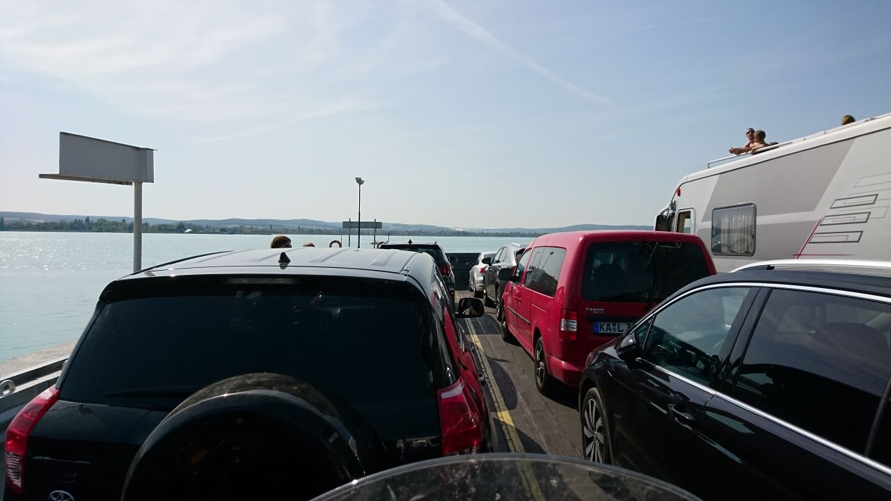 Heute Morgen ging es schon gegen acht Uhr los, um die „Morgenkühle“ soweit möglich auszunutzen und weil es kein Frühstück gab. Wir fuhren am Balaton entlang, um auf der Halbinsel bei Tihanyi Rev mit der Fähre über den See zu fahren. In der Nähe vom Fähranleger fanden wir ein Bistro, wo wir unser verspätetes Frühstück einnehmen konnten. Es gab ein lecker Omelett mit Salami, Schinken und Paprika, dazu tranken wir Latte Macchiato. Das Omelett war richtig gut, und hat für den ganzen Tag gereicht.